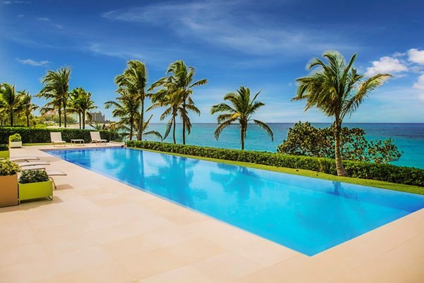 One Caribbean Estates proudly presents an Ultra Luxury Beachfront Estate nestled in the prestigious Ocean Club Estates on Paradise Island in The Bahamas, this unique estate stands majestically amidst swaying palms on an elevated plot, offering breathtaking ocean vistas. Its architectural design boasts sleek lines and expansive windows, creating a living space that is truly without parallel.