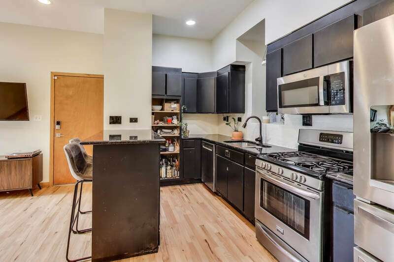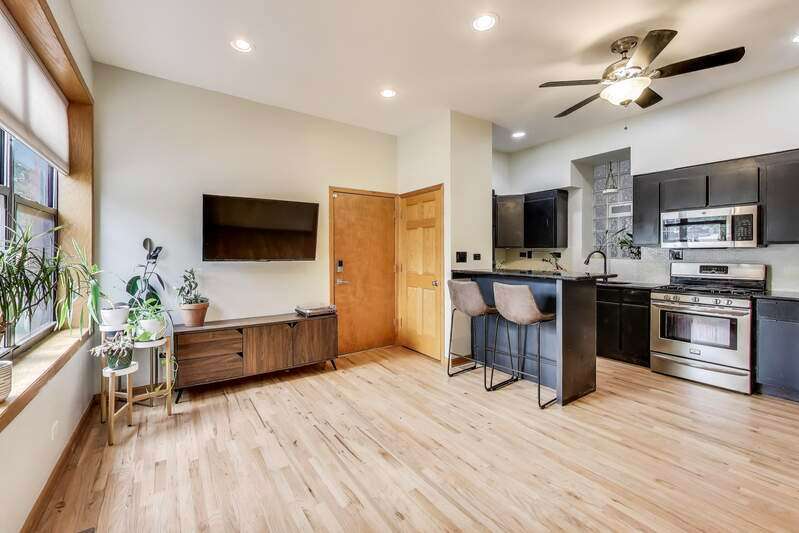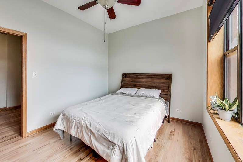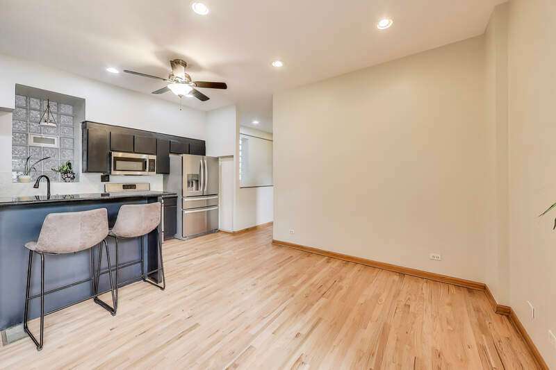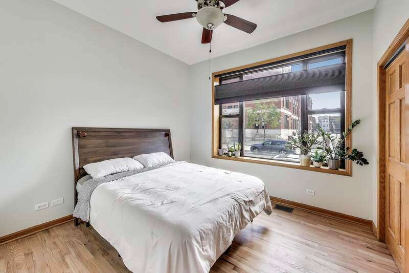 Charming duplex-down condo in the heart of Ukrainian Village - 2452 W Iowa St. South-facing and flooded with natural light, this thoughtful 1-bedroom, 2-bath home features a main-level bedroom and luxurious soaking whirlpool tub, plus a finished lower-level family room with a gas fireplace and full walk-in shower. Enjoy in-unit laundry, abundant private storage plus extra common-room storage, and a smart mix of updated finishes: hardwood floors on the main level (refinished), new LVP in the lower level, replaced basement windows (2022-23) and newly carpeted stairs. Major appliances recently updated - washer/dryer (2021), fridge (2022), dishwasher (2023). High-speed internet ready. Superb walkability to local bars, restaurants, grocery stores, parks, public transit, and major concert venues; easy street parking rounds out the convenience. A bright, move-in-ready urban retreat with extra living space below - perfect for entertaining, home office, or media room.