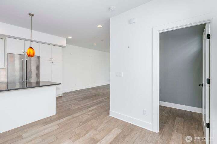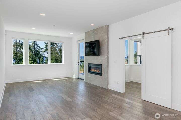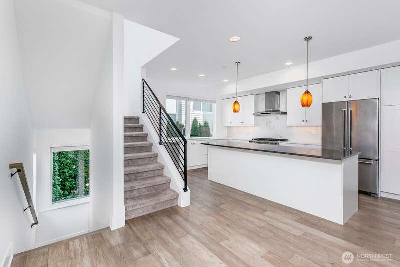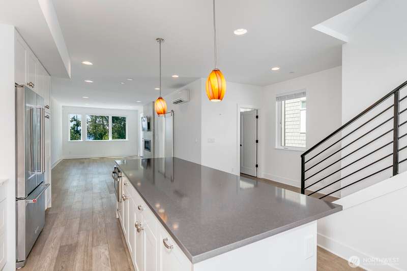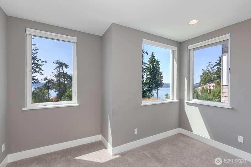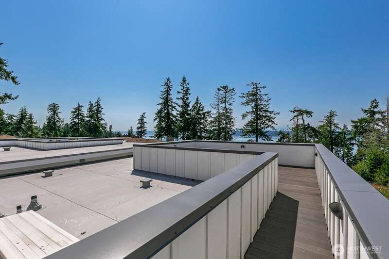 Modern townhome with sound & mountain views, located on a dead end street. Guest bedroom & full bath on the first floor, main level is open with living & dining areas office, view deck and large kitchen featuring a huge island, gas cooking, SS appliances - perfect for everyday or entertaining. Upper level has the 2nd bedroom, full bath, utilty room and the primary suite w/ walk in closet & walk in shower. The roof top deck has awesome views and is plumbed w/ water & gas. Enjoy gorgeous sunsets from this special space. The rent cap is 4 of the 14 units & only 2 of them are currently rented, rentals are a minimum of 180 days. Easy access to freeways, shopping and medical.