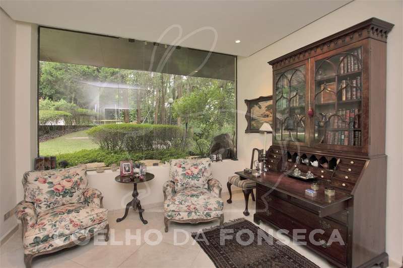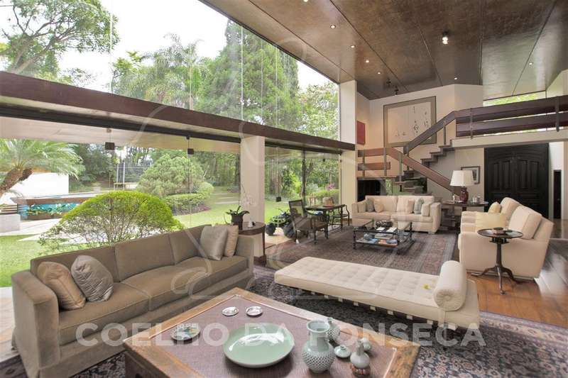 Maravilhoso projeto Marcos Tomanik. Salas envidraçadas voltadas para lindo jardim. Bem conservada. 4suítes com armários,1 com closet e banheiro Sr./Sra. Piscina aquecida com cascata, gazebo, campinho, casa de bonecas. 3 dependencias de empregada e 1 de motorista. Elevador.