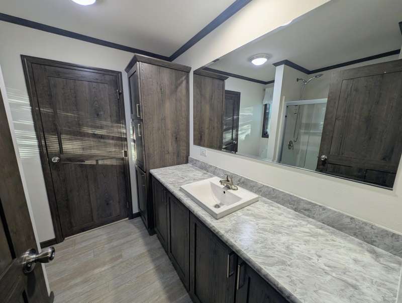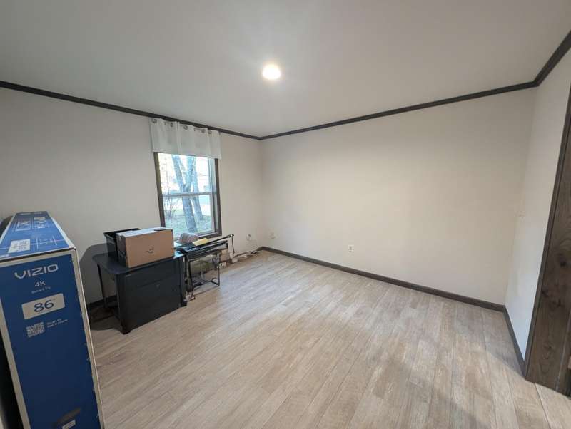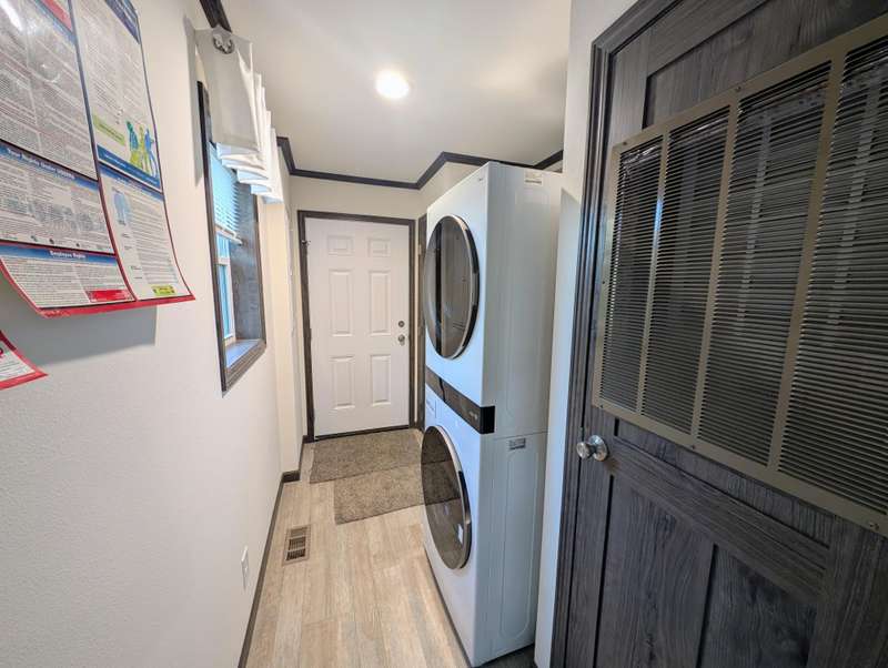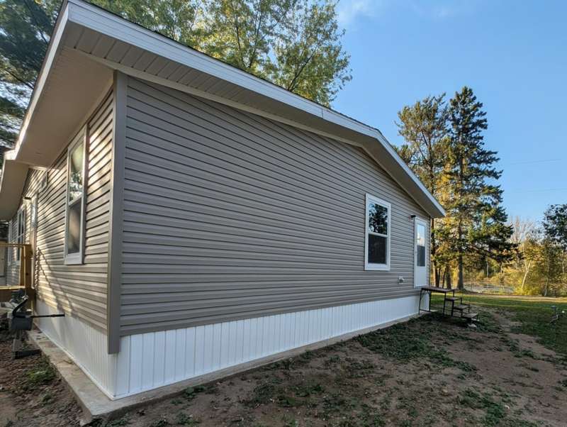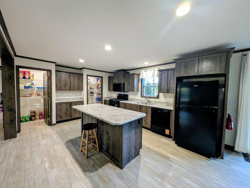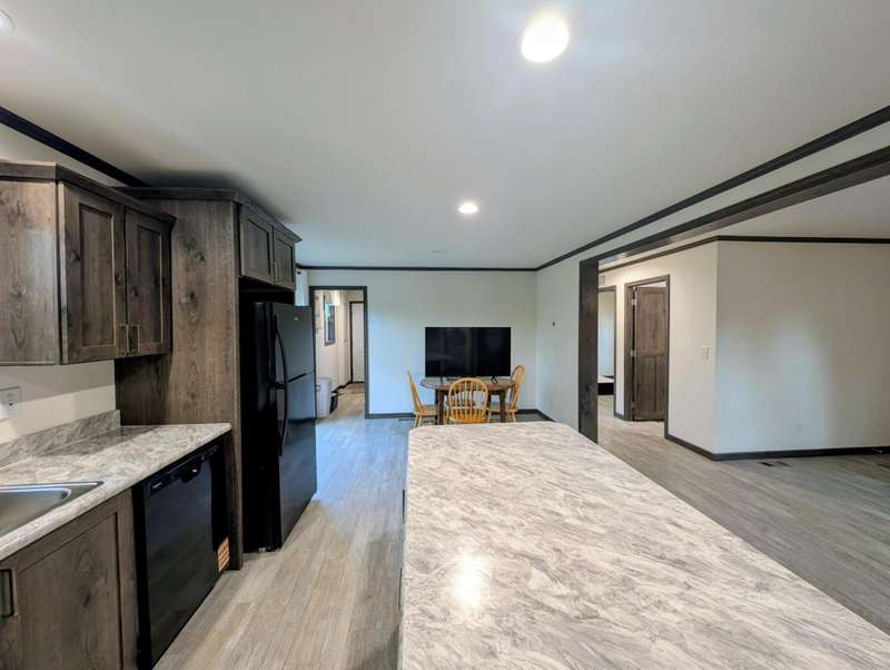 Here's your chance to own a BRAND NEW / NEVER LIVED-IN 2025 manufactured home with all the bells and whistles. This modern 3 bedroom, 2 bathroom home sits on a private, double lot and features an open concept living with master bedroom and bathroom on one end and two bedrooms on the other side. The kitchen features an enormous pantry, soft close drawers, and a stunning island counter. New appliances include refrigerator, dishwasher, gas oven, washer, and dryer. New water heater and furnace are ready to be fired up as well. Come see it today!