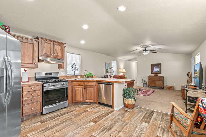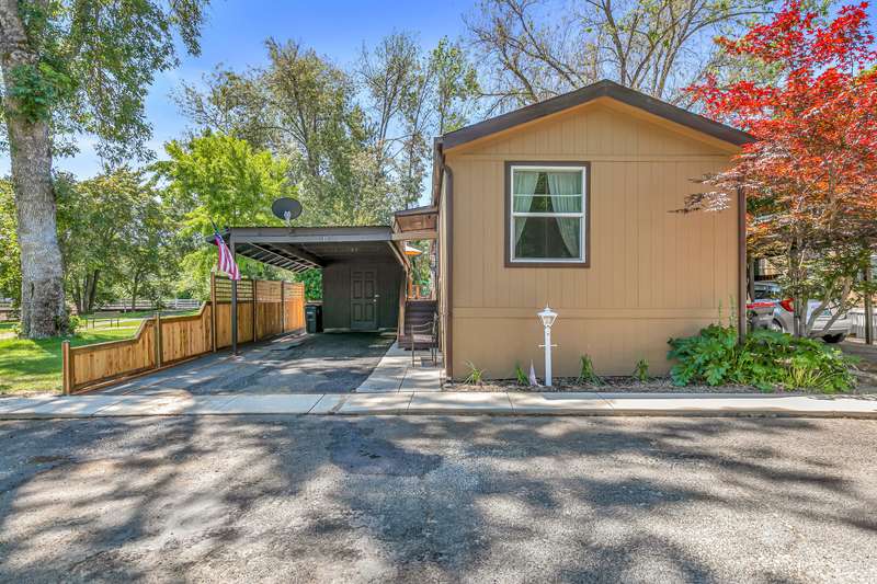 Your dream home is right here in the charming historic town of Jacksonville! This beautiful 1,178 sqft manufactured home, built in 2022, boasts 3 bedrooms and 2 modern bathrooms. Step outside to an impressive 352 sqft custom Trex redwood deck that offers peaceful, unobstructed park-like views, partially surrounded by a beautifully crafted cedar fence and an expanded driveway for added convenience. The open floor plan invites you in, creating a warm and welcoming atmosphere, while the kitchen features elegant walnut cabinetry and plenty of storage both inside and out. This is a fantastic opportunity to own a slice of Jacksonville's unique charm—don't let it pass you by!