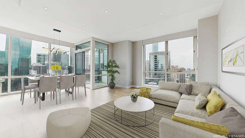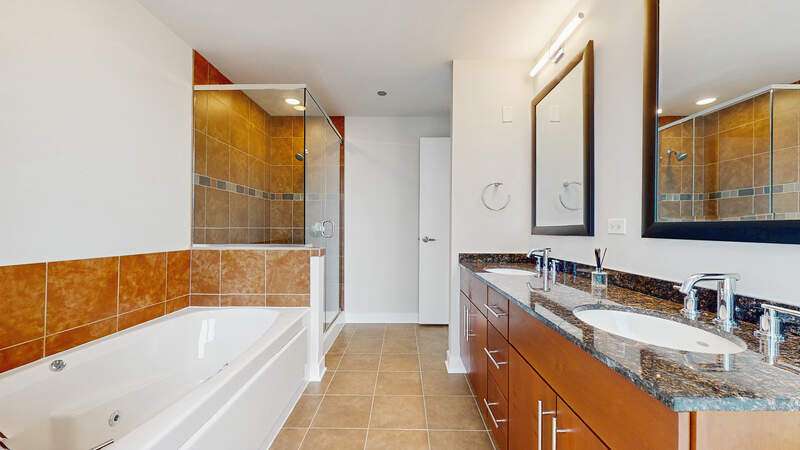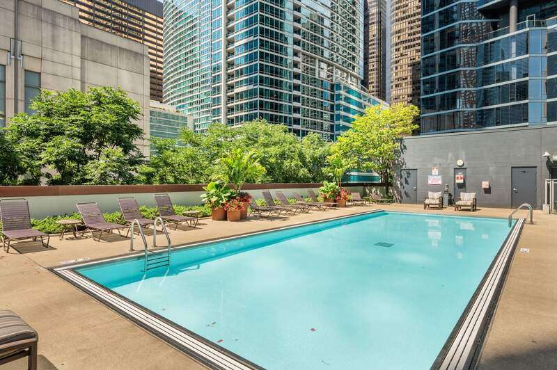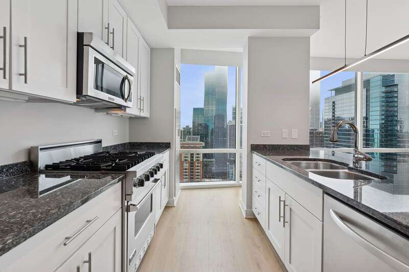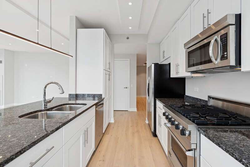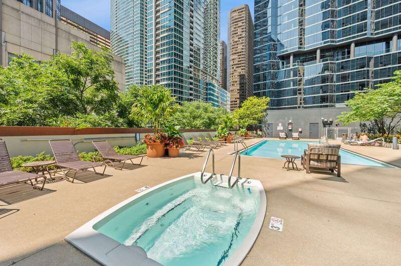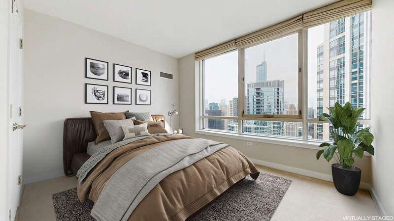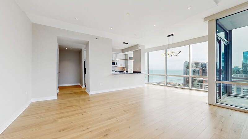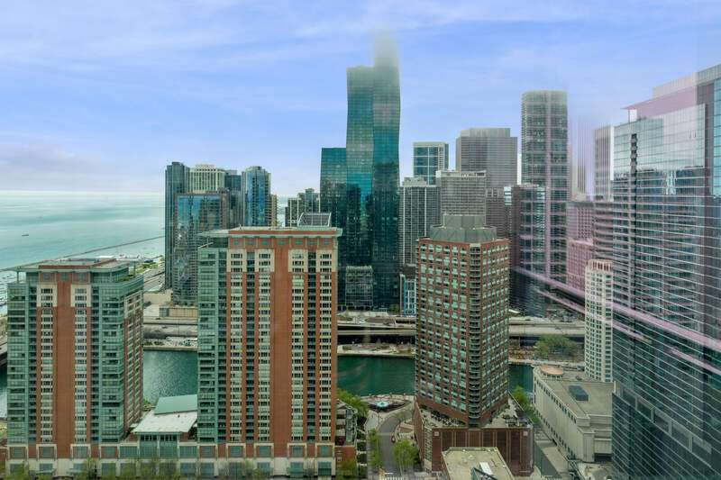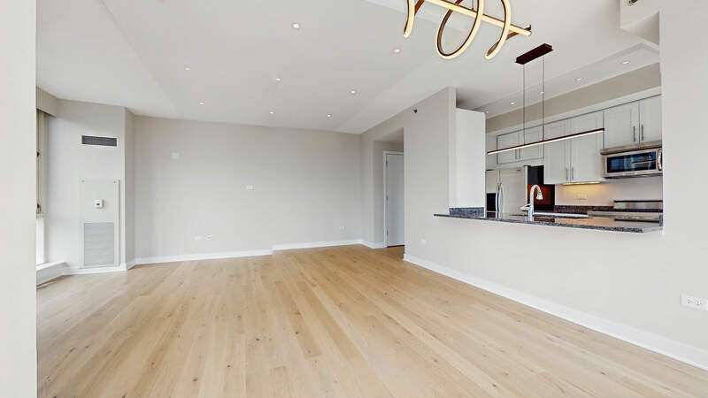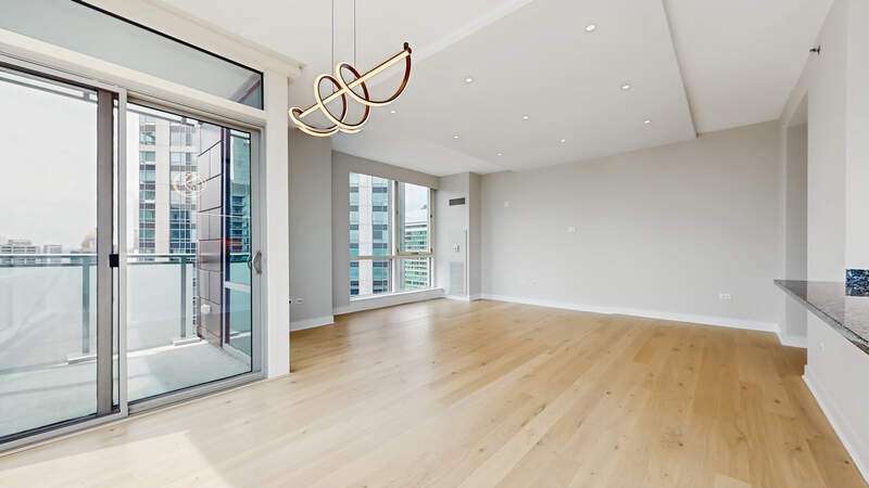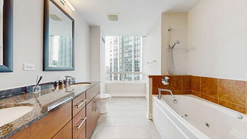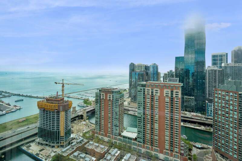 If you are looking for breathtaking views then this is the home for you. The "05" is the premier two bedroom tier with sweeping lake, river and city views. This home has been newly upgraded with recessed lighting in the hallway, kitchen, living and dining room, new 5" wide plank wood floors and new paint. The kitchen features modern white cabinets, granite countertops and high end stainless steel appliances. The spacious primary suite has a walk in closet and bath with a dual vanity, jacuzzi tub and separate shower. The home also features organized closets, custom window treatments, floor to ceiling windows, a balcony and in unit washer and dryer. Full amenity building with a 24 hour doorman, attached garage, gym, outdoor pool and hot tub, work room, party room and storage.
