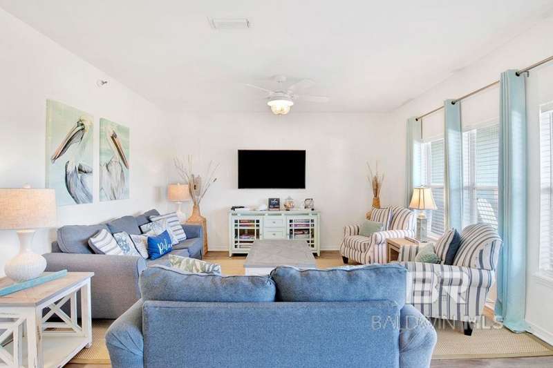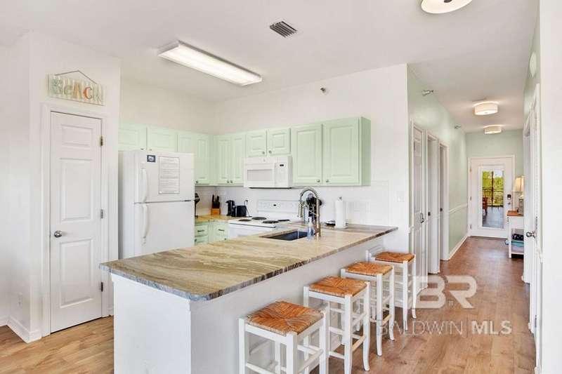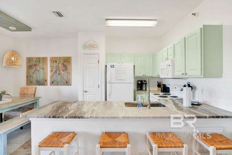 Welcome to Romar Lakes #303C! Located just steps from the sugar-white sands of Orange Beach, this beautifully updated 2-bedroom, 2-bath condo is the perfect mix of comfort and convenience. This completely turnkey condo offers an open, light and airy layout, fully equipped kitchen, private balcony, and in-unit laundry. Romar Lakes features deeded beach access, a sparkling pool, fishing gazebo, and a prime location near top dining, shopping, and the Gulf State Park. Whether you're looking for a full-time home, weekend retreat, or investment property, this coastal gem checks every box. Buyer to verify all information during due diligence.