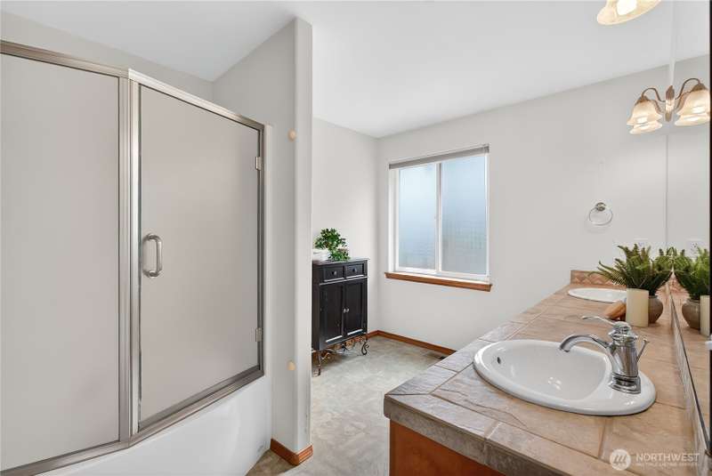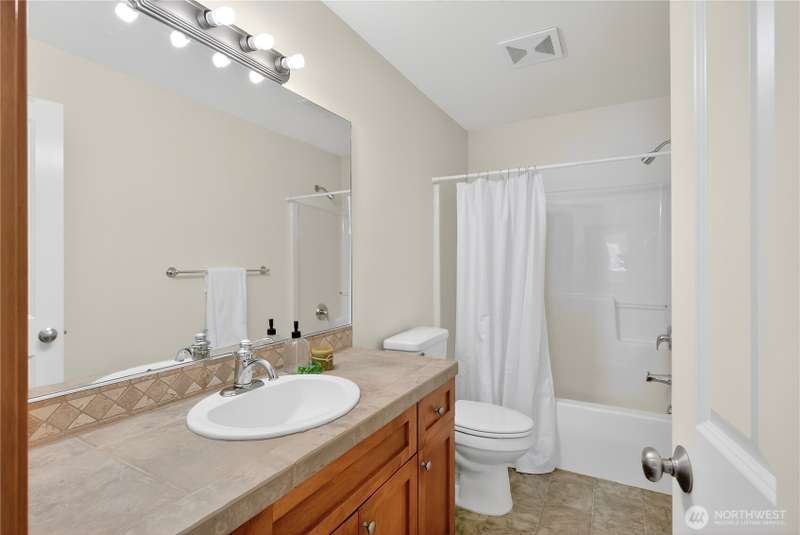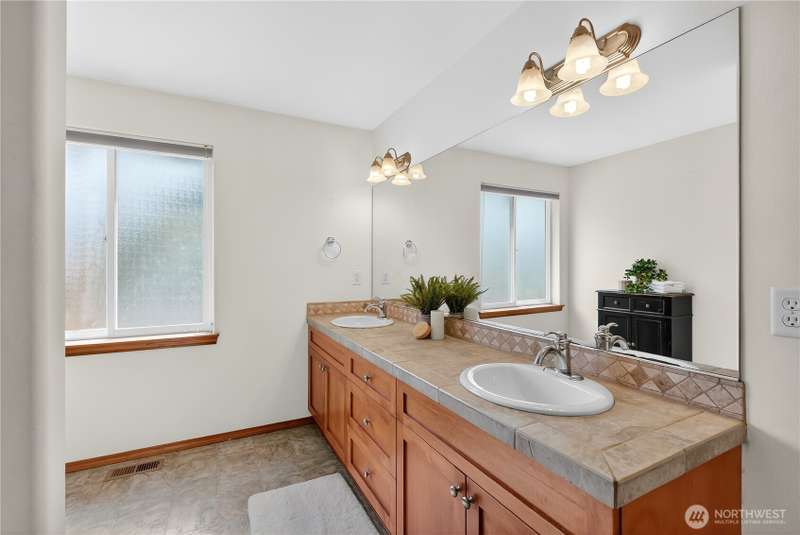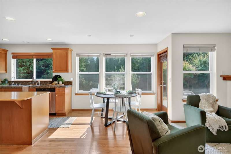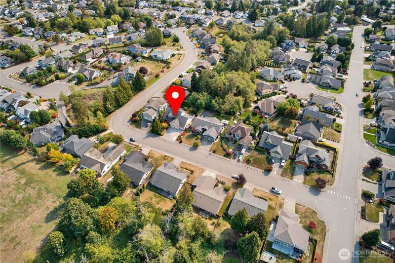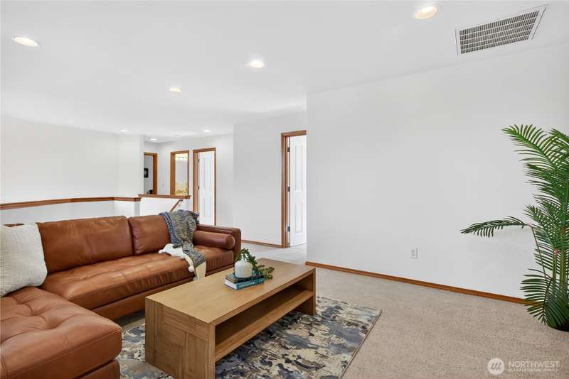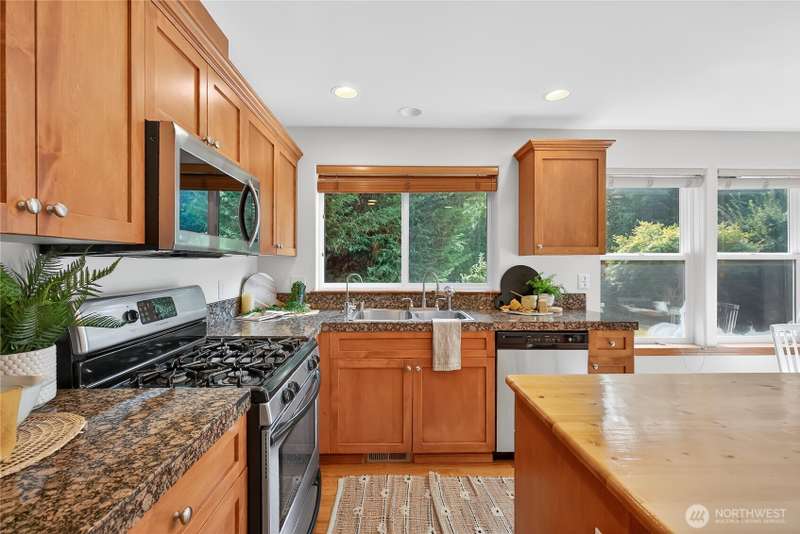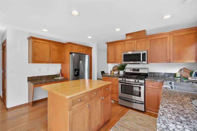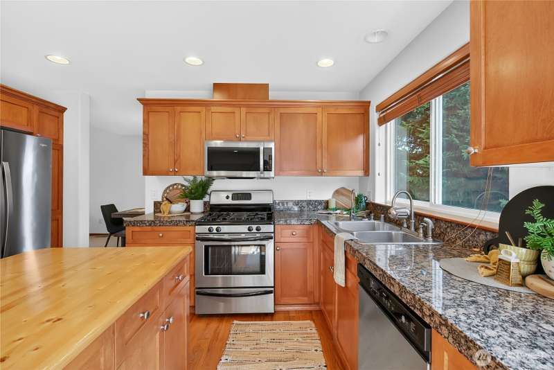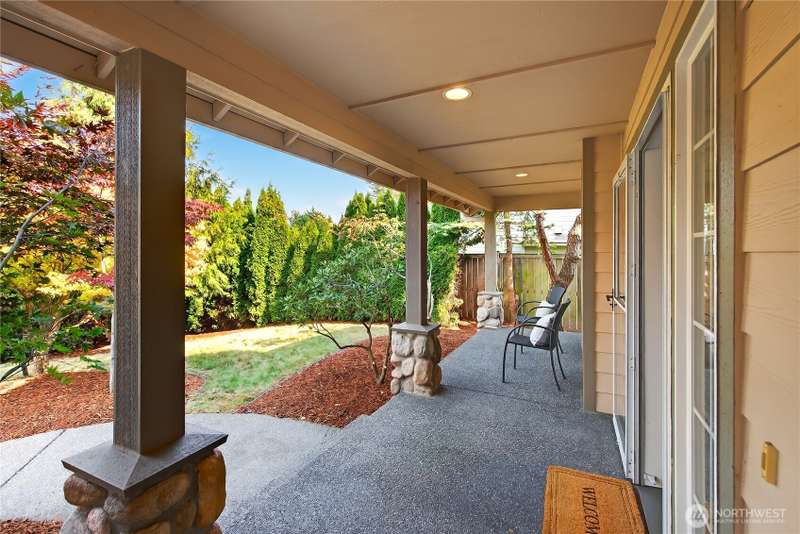Set on a quiet street, this inviting home welcomes you with its covered front porch and thoughtful layout. The main level greets you with bright spaces, big windows, and tall ceilings to go along with its two living areas, primary suite with vaulted ceilings and walk-in closet, and main-floor laundry. The kitchen features granite counters, maple cabinetry, stainless appliances, and a walk-in pantry. Upstairs offers three bedrooms, a full bath, and an additional bonus living area, ensuring everyone has space to unwind. Step outside to a private, peaceful backyard to find a spacious patio along with garden space and fruit trees. Central air, a 3-car garage, hardwood floors, and two cozy gas fireplaces round out this well-designed home.