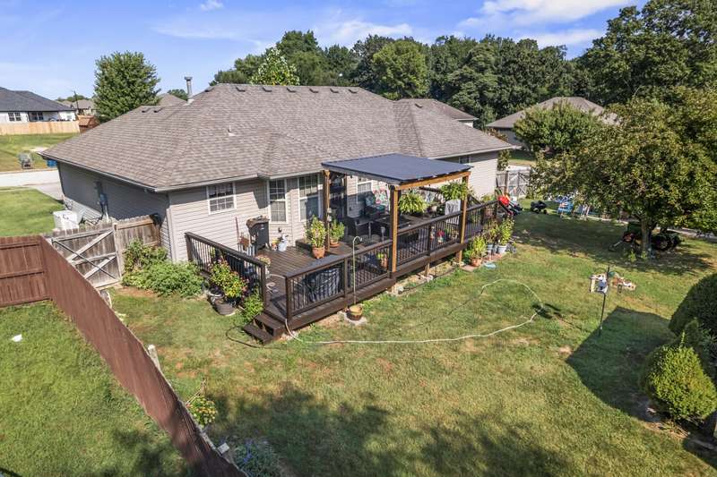 796 N Lexington Republic, MO. Come see this nice move in ready home in Republic with almost 1,400 square feet on a corner lot! The sellers have done a lot of updates to this lovely home with nice hardwood floors, quartz counter tops, a home generator and an enlarged deck. Also, the roof is only 4 years old! The living room has a stone fireplace, and the living area is open to the dining and kitchen area. The primary bedroom is a good size and has a nice full bathroom with 2 sinks and 2 walk in closets! The other 2 bedroom are decent size as well and there is a full hall bathroom.The backyard is fenced and has nice landscaping and the deck is covered for more shade and there is also a car port. Come see this home today in the Republic school district!
