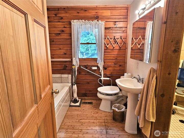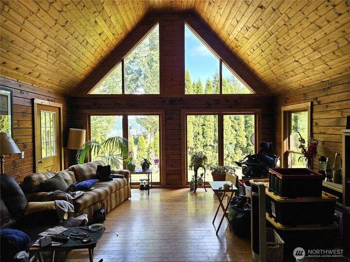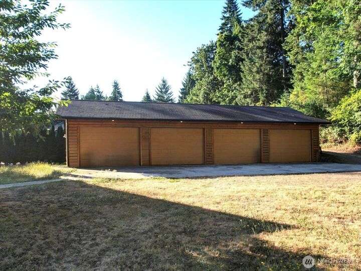 Olalla Bay Waterfront Log Home on 2.5 acres. First Time on Market for this Private Home with 2 Ensuites, Loft Area and Detached 1740 SF 4-Car Garage. A Unique Property with Partial Views of Olalla Bay Market and the Bay. Estate Sale & is being Sold AS IS. Galley Kitchen & Great Room with Vaulted Ceiling & Circular Staircase to a Loft Area, Perfect for a Home Office.Wood-Clad Windows, Bamboo Floors, Newer HVAC & Water Tank. On Each End of Home Find an Ensuite Bedroom. The Home will need work on Decks and Updating. Home is on Shared Well & Private Septic. Trail to Approx 297 feet of Bay Front will need to be completed by New Homeowner. This property will need some work, but has all the components for a wonderful home & a great investment.