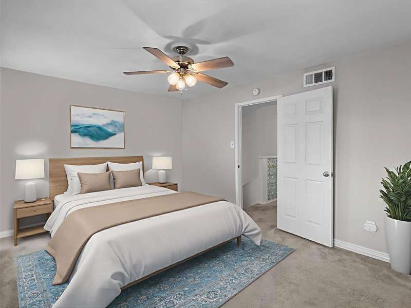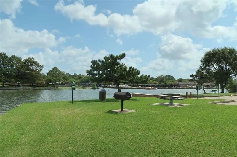 Rare townhome opportunity with fridge, washer, and dryer included! Open living and dining area featuring a cozy fireplace and wet bar, with french door balcony, perfect for entertaining. The kitchen offers new countertops, while both upstairs bedrooms offer private en-suite baths and lush gray carpet. Perks include double storage units and reserved parking, relax at the private pool, or launch your kayak for some weekend fun! Easy access to NASA Pkwy and minutes from University of Houston Clear Lake, medical center, restaurants and more. Move in ready early September!