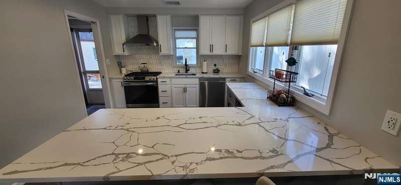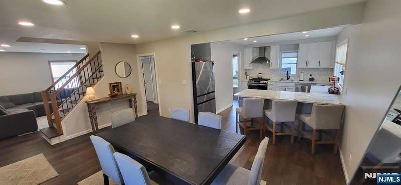 Discover this charming and sunlit 3-bedroom, 1-bath Cape Cod home featuring an open floor plan. Recently renovated, the home offers a stunning eat-in kitchen with quartz countertops, stainless steel appliances, and a cozy coffee bar. The first floor includes a spacious living room, a formal dining area, a bedroom, and a full bathroom—perfect for guests or flexible living needs. Upstairs, you'll find the primary bedroom and an additional bedroom, both with ample closet and storage space. The large backyard is ideal for entertaining and outdoor activities, complete with a patio, one car garage and a convenient storage shed. The tenant is responsible for utilities and snow removal. Located close to Blue Ribbon elementary school, public transportation, and local amenities, this wonderful opportunity is nestled in the highly desirable town of Waldwick. Landlord requires an application, credit report, and interview. No pets and no smoking. Don't miss out on this lovely home! Short term rental option.