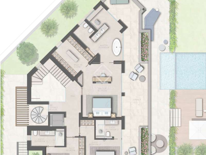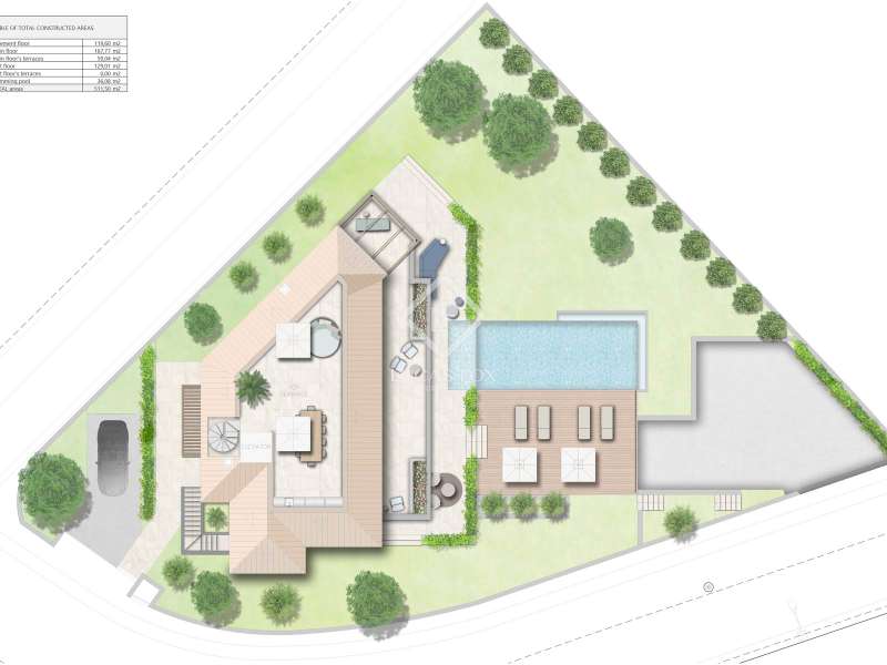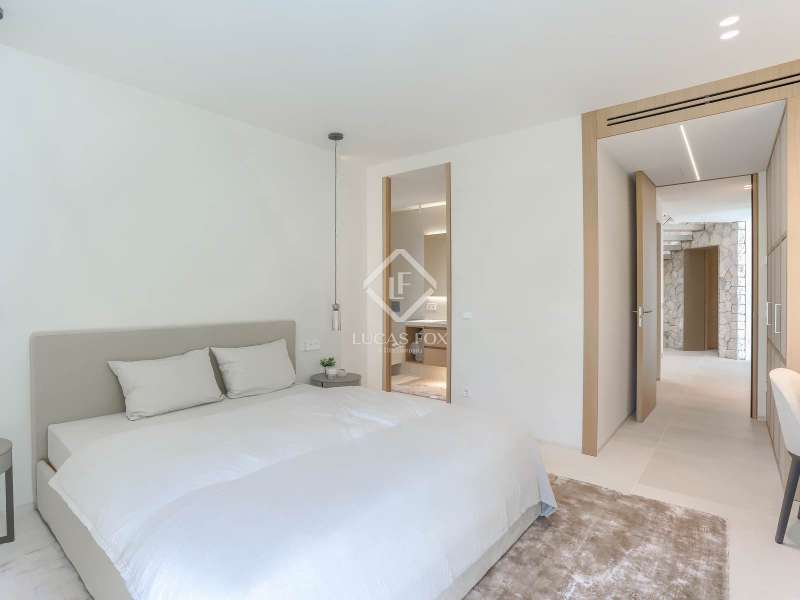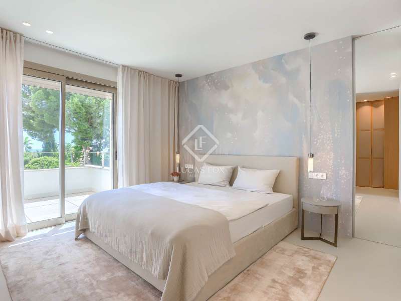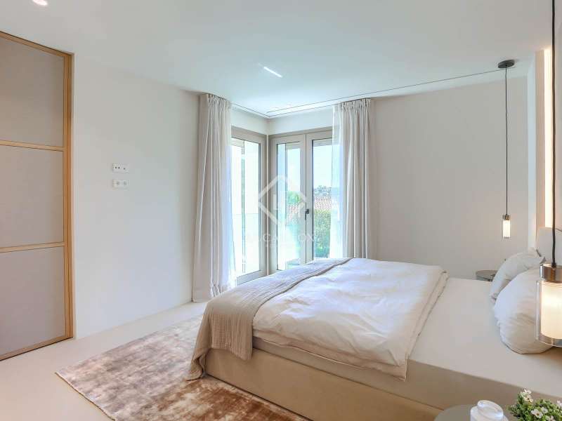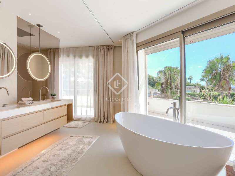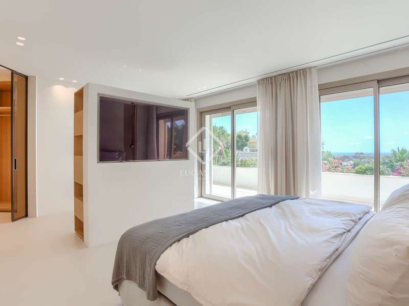 Lucas Fox Mallorca presents this sumptuous new villa located in Bendinat, one of the most sought-after locations on the island. Thanks to its slightly elevated position, the property offers spectacular views of the sea from the rooftop and the surrounding green countryside. The house has been designed to invite light to generously enter each room, thanks to large bay windows overlooking the exterior, enhanced by a landscaped garden designed to preserve perfect privacy. Spread over three levels, all served by an elevator, this villa fully meets the demands of luxury. The first level houses a wellness area with a gym, sauna, and bathroom. Wine lovers will appreciate the dedicated cellar. A garage can accommodate three vehicles, with interior access to all levels. The second floor comprises a spacious living room with a fully equipped modern kitchen, opening onto a first welcoming terrace, ideal for meals with family or friends, before reaching the idyllic pool area surrounded by vegetation. A first master suite completes this level. The top floor houses three bedrooms, each with its own bathroom and dressing room, including a spacious master suite opening onto a terrace with magnificent views. A rooftop terrace offers even more spectacular views for enjoying the sun in peace. Built with high-end materials, this villa offers unique comfort: air conditioning, salt-water infinity pool, wellness area, etc. Its privileged location gives you quick access to the renowned marina of Puerto Portals, famous for its luxury boutiques and prestigious restaurants. This property combines luxury, comfort and modernity for year-round living, thanks to its proximity to international schools, golf courses, hiking trails, tennis and padel clubs, the center of Palma and its airport, all in less than 20 minutes!!