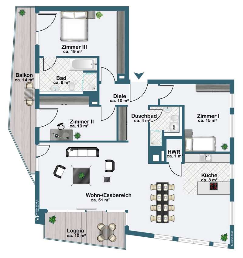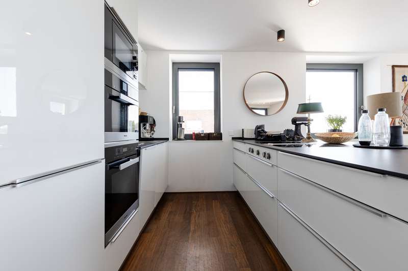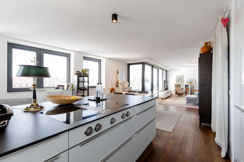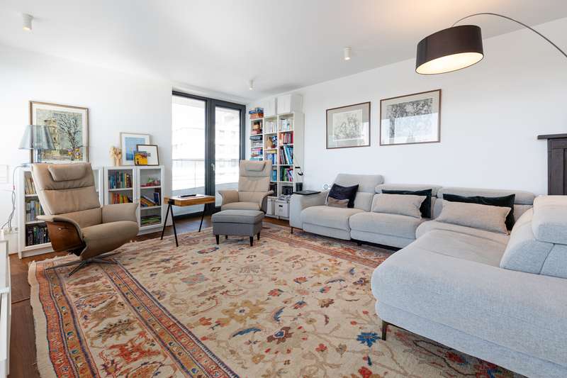 Living in the award-winning "Axis" designer apartment building - this exclusive high-end four-room apartment leaves nothing to be desired. The "Axis" is the first residential tower in Frankfurt to be built to the KfW 55 standard. It was awarded the German FIABCI Prix d'Excellence internationally in 2017 and described by the Wall Street Journal as the "Oscar of the property world". The friendly concierge awaits you in the very prestigious lobby with its luxurious interior. The approximately 137 m² apartment is easily accessible via an elevator. You enter the apartment on the fourth floor via a spacious hallway, which offers enough space for a checkroom. The hallway leads directly into the spacious living/dining area, which is equipped with a modern and tasteful fitted kitchen. From here you have direct access to the loggia and an additional balcony. The apartment has three bedrooms. The master bedroom offers a large daylight bathroom en suite with walk-in shower and bathtub. There is also a shower room with a walk-in shower and washing machine connection. All rooms are equipped with underfloor heating and underfloor cooling, which can be individually regulated in each room, guaranteeing maximum living comfort. A ventilation system is also integrated into the floor. The friendly and competent concierge service takes care of reservations, registers guests, accepts parcels and offers other services. An additional cellar room is also available. An underground parking space is already included in the purchase price. The apartment is currently rented, but can be taken over by arrangement. Skyline Plaza is located in the immediate vicinity and offers numerous shopping opportunities, a wide range of restaurants and a modern wellness and fitness area. There are also many other restaurants in the immediate vicinity. The Frankfurt exhibition grounds are also just a few minutes away by car and provide first-class connections to international events.