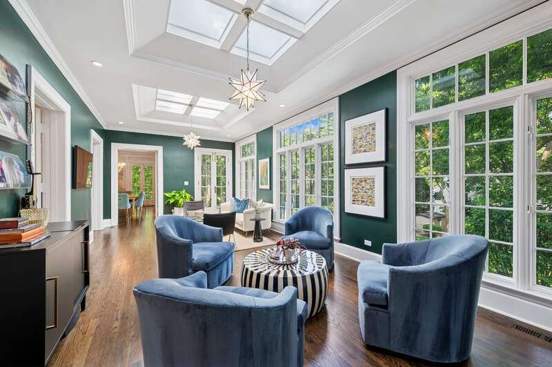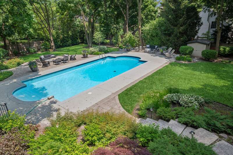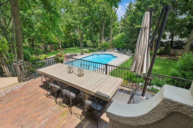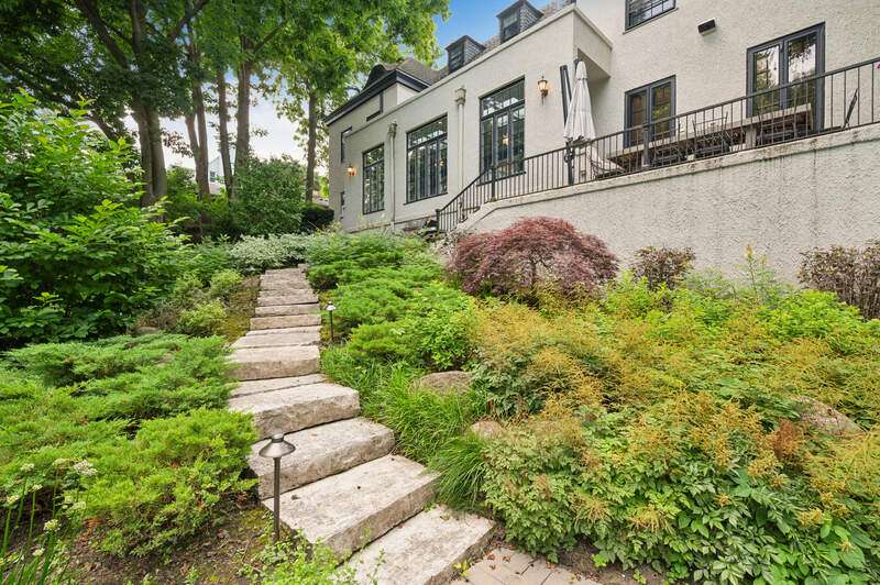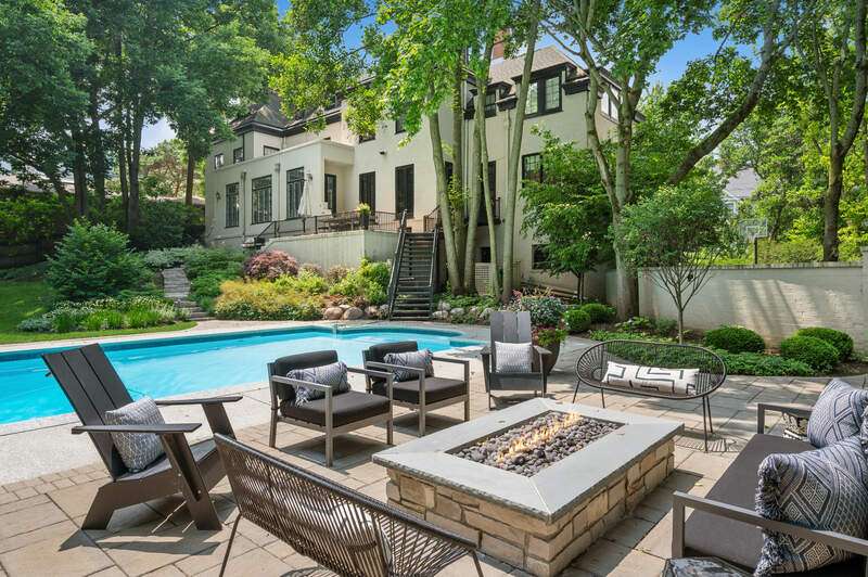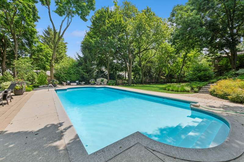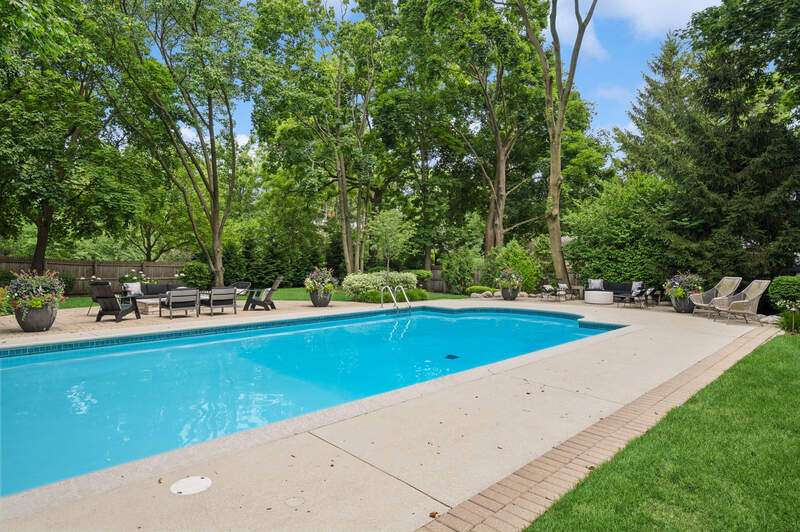 Presenting one of Winnetka's most admired homes with an expansive back yard and spectacular pool. The home is majestically perched at the top of Arbor Vitae, making it our own "Castle on the Hill" built in 1915 by Otis & Clark Architects. This Edwin Hill Clark masterpiece, featured in Luxe magazine in 2021 and on the Winnetka Community Housewalk Home Tour in 2023, was painstakingly renovated in 2019, yet retains the charm and grandeur of the original architectural details that inspire classic new homes today. The stunning barrel-ceiling reception gallery, ideal for an art collector and entertaining, immediately sets the tone. Fine, grand rooms all designed for casually elegant living span the first floor. The centerpiece of this special home, an atrium great room with skylights and three series of windows, overlooks beautiful vistas of the rolling backyard, patios & pool. Soaring ceilings, intricate millwork, nine sets of double French doors, and incredible light make this floor absolutely stunning. The kitchen has been completely renovated with a La Cornue range, Sub Zero refrigerator, Miele steam/convection oven, Waterworks faucets, radiant floor heating, new custom cabinetry, and spectacular countertops & oven backsplash. Enjoy the beautiful decor and mural wallpaper in dining room, built-in bar and wine refrigerator in den, new gas fireplace and built-in cabinetry in family room, hand-painted "wallpaper" in powder room, and built-in Sonos ceiling speakers throughout the first floor. The second floor boasts a new primary suite spa retreat with Waterworks faucets, steam shower, new free-standing tub, heated marble floors, huge closet with custom island, built-in shoe organizer, floor-length jewelry storage, and incredible separate lounge/office space. Three en suite bathrooms were completely renovated on the second and third floors, along with an update and reconfiguration of the third floor with new gym space (which could double as a small bedroom) and large recreation room or play area. This home has it all! The huge, park-like backyard with large pool, renovated in 2021, has two new hardscape patio areas and a built-in gas firepit. Professionally landscaped in one of the best East Winnetka locations. Close to town, schools, Lake Michigan, and downtown Winnetka.