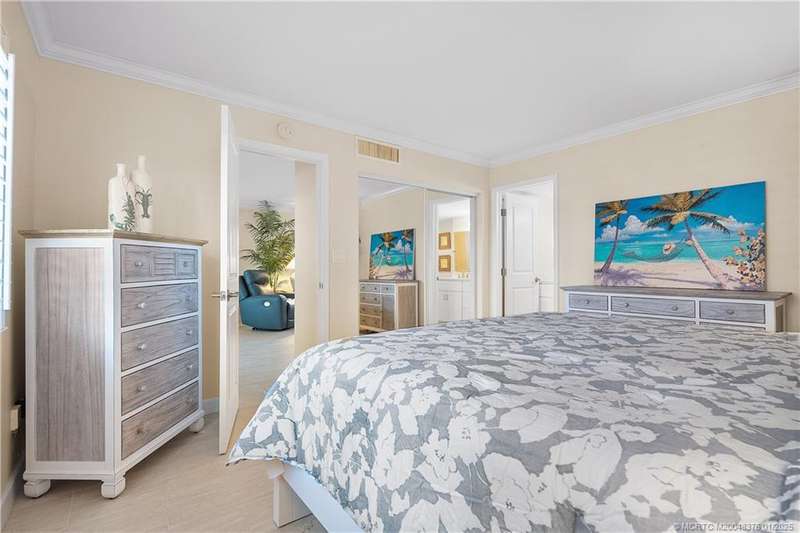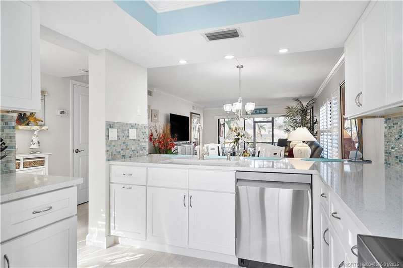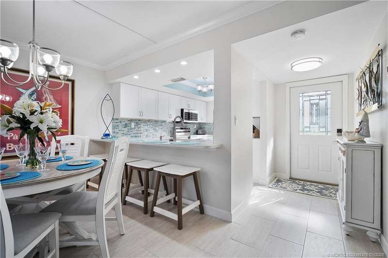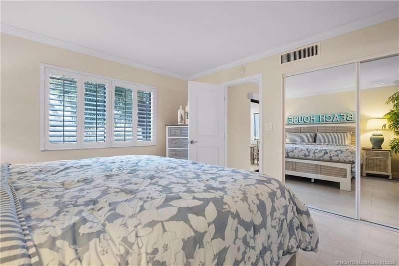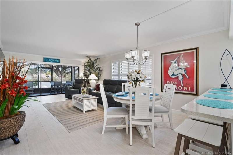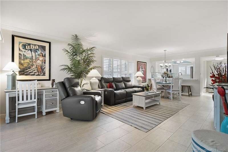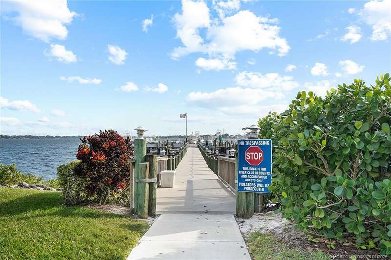LOOKING FOR YOUR PIECE OF PARADISE? IT’S JUST 10 MINUTES TO QUAINT DOWNTOWN JENSEN BEACH. This one-of-a-kind, completely remodeled 2-bedroom, 2-bath end unit in the desirable River Club community is a true gem. Situated on the first floor, this corner unit features a serene waterfront tributary (with available docking) flowing into the Intracoastal Waterway. Natural light and premium finishes abound in the decorator-staged interior, highlighting the Casual-Contemporary Florida Lifestyle. The modern kitchen features top-of-the-line Samsung stainless steel appliances, quartz countertops, and a recessed accent ceiling, perfect for cooking and entertaining. White lacquer 3” plantation shutters enhance the Island Vibe.Enjoy tranquil views and a short walk to the large dock with access to the St. Lucie River. Amenities include a pool, game room, fitness center, clubhouse, and more. Ideal for full-time living, a seasonal retreat, or investment. Schedule your private tour today!