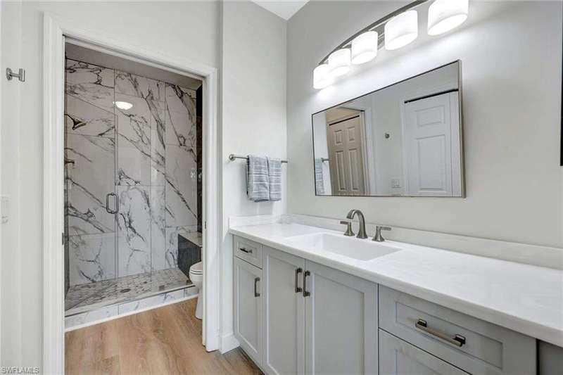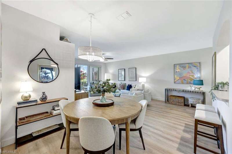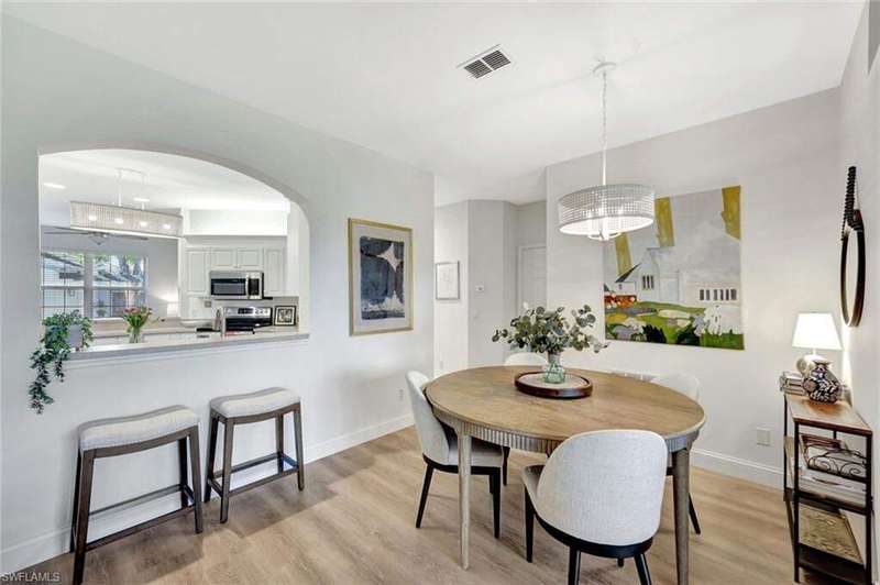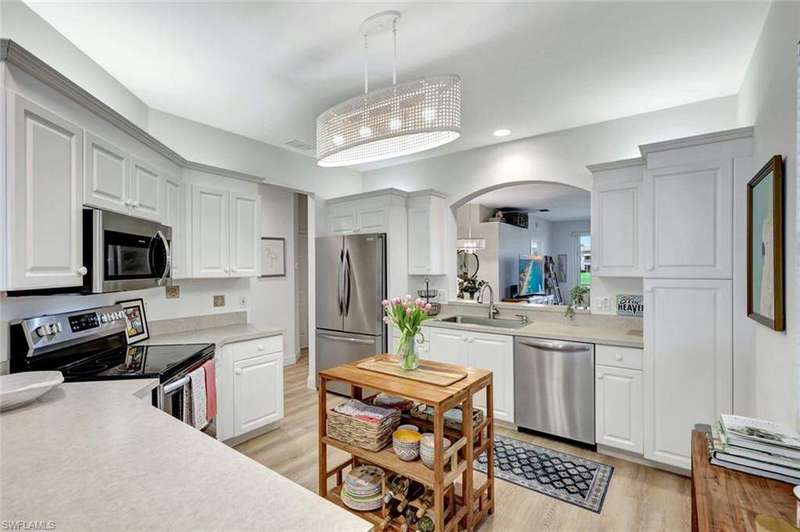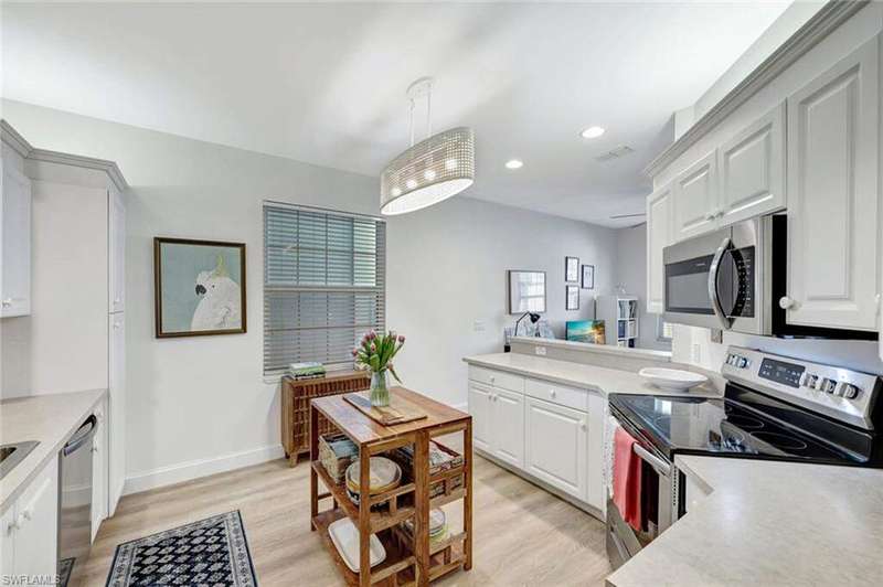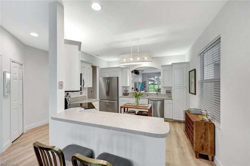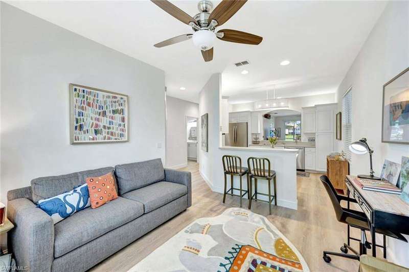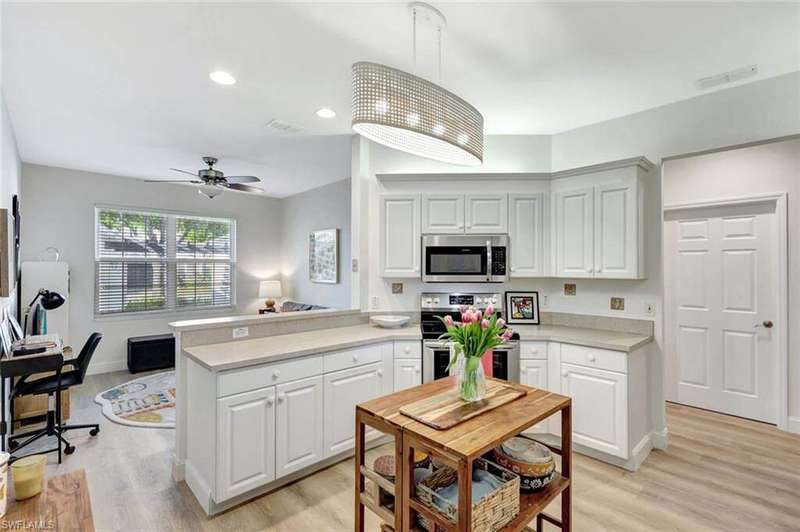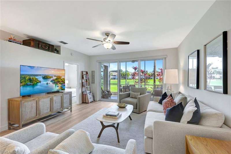 THE BEST DEAL IN THE STRAND WITH $46,000 IN PRICE IMPROVEMENTS! LUXURY MEETS VALUE IN THIS RECENTLY UPDATED FIRST-FLOOR CONDO WITH STUNNING GOLF COURSE VIEWS! Welcome to effortless luxury in this exceptional 2-bedroom + den, 2-bath first-floor unit, perfectly positioned on the 7th hole with a desirable northern rear-exposure in the highly sought-after Wedgewood at The Strand community. Step inside and be wowed by the brand-new flooring throughout and freshly painted interiors, setting the stage for a bright, airy, and inviting space. The open-concept layout is designed for both relaxation and entertaining, seamlessly connecting the stylish living area to a beautiful kitchen featuring new stainless-steel appliances, a farmhouse sink, new garbage disposal, and even a cozy breakfast bar. The versatile den offers endless possibilities-use it as a TV lounge, home office, or an additional guest retreat. Both bathrooms have been completely remodeled with permits, showcasing modern finishes and thoughtful design. Additional upgrades include new ceiling fans, light fixtures, a new water heater, and a new washer & dryer. Enjoy breathtaking golf course views from your spacious screened lanai, the perfect spot for morning coffee or sunset unwinding. This home also boasts new hurricane-impact windows and sliders, a newer roof, updated gutters and landscaping, plus a 1-car detached garage for added convenience. Located in one of Naples' premier golf communities, The Strand, this home offers an optional membership to the prestigious 27-hole championship golf course. The social membership grants access to a state-of-the-art fitness center, rejuvenating spa, junior Olympic-sized pool, multiple top-tier dining options, social clubs, and a variety of recreational activities including croquet, basketball, bocce ball, pickleball, and tennis. Opportunities like this don't last long-schedule your private showing today and start living The Strand Lifestyle!!