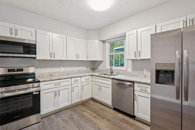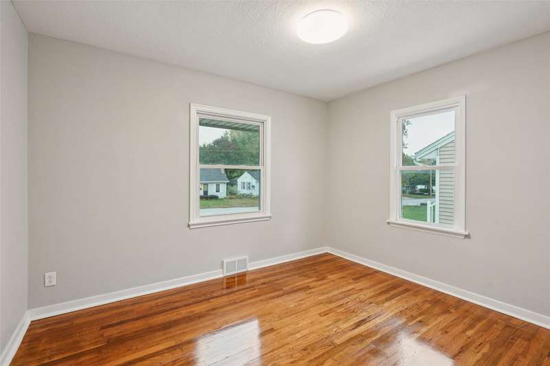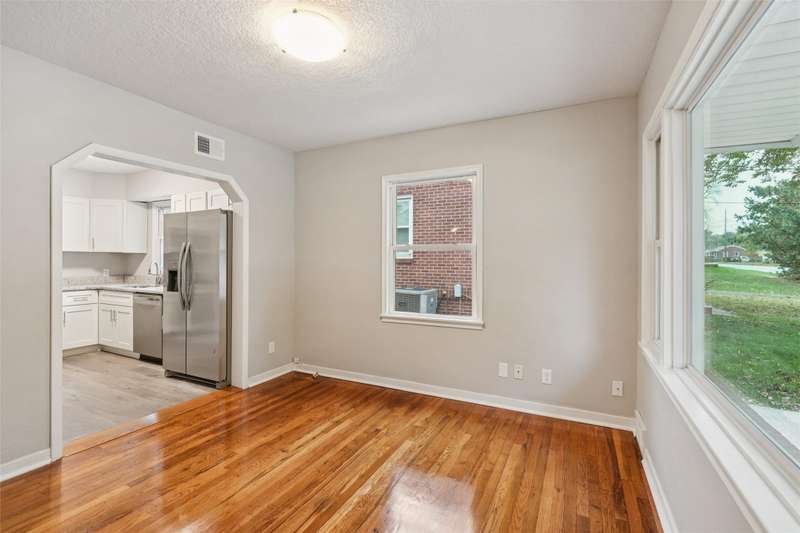 Remodeled home includes new kitchen with granite countertops, dishwasher, microwave, stove and refrigerator. Bath has tiled walls around the tub and new fixtures. Hardwood floors are refinished. Walls and ceilings retextured and repainted. Home features central air and high efficiency furnace. Off-street parking slab in rear for 2 vehicles. Check out this move-in ready home with easy access to shopping or the interstate.