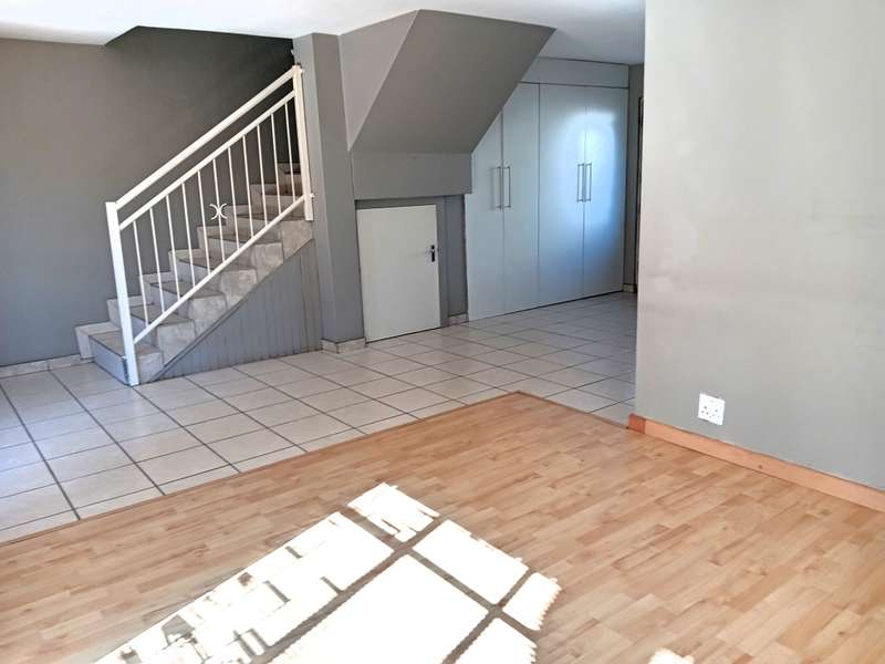 An old home that reflects stability and charm. Surprise package home full of pleasant living entries for all to enjoy! On entering this wonderful duplex you are welcomed by the bright and inviting open plan living and dining areas. Just off the dining area is the delightful open plan kitchen with engaging wood cabinets and counter tops with an electric stove and oven as well as oodles of cupboard space and a breakfast nook. In the living area is a sliding door which opens onto the lovely and private covered patio which overlooks the cozy and neat private garden with backyard access. This beautiful home offers 3 bedrooms with laminated wood flooring and built-in cupboards as well as 2 gratifying bathrooms. The master bedrooms is en-suite with a bath, basin and toilet. The 2nd common bathroom with a shower, basin and toilet for your convenience. Adding to this amazing home is the built-in storage cabinets and the storage hatch downstairs under the staircase as well as a laundry cabinet with enough space for 2 appliances. There is one dedicated covered parking dedicated to the convincing unit as well as additional/visitors parking in the complex. Strategically located close to all amenities. There is currently a lease agreement in place until end of January 2026. Spick and span from tip to toe... Just move right in! Call this minute to view.