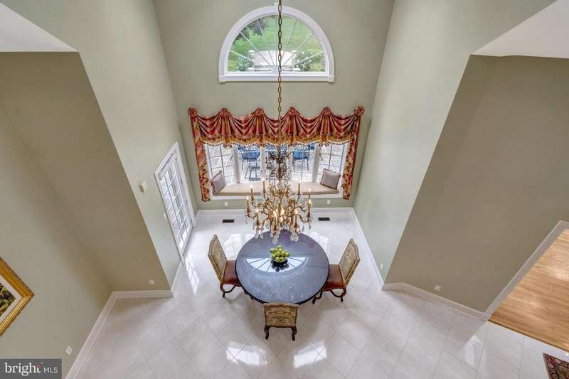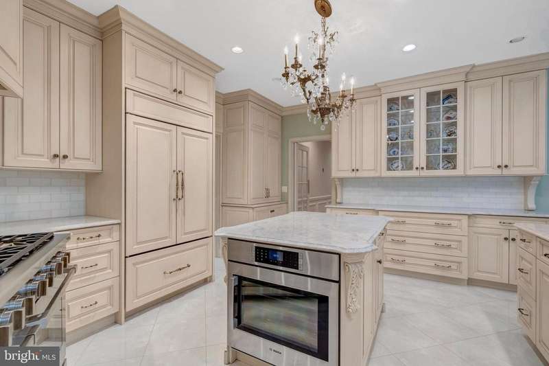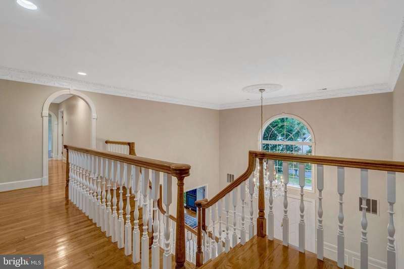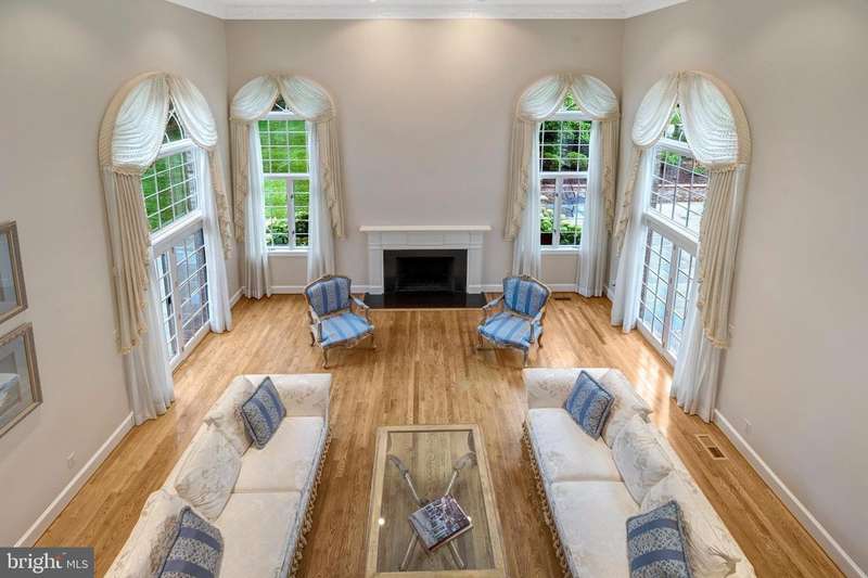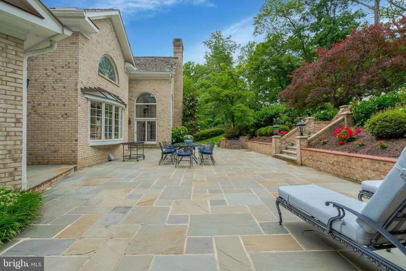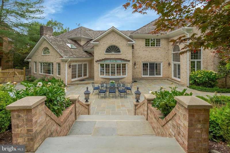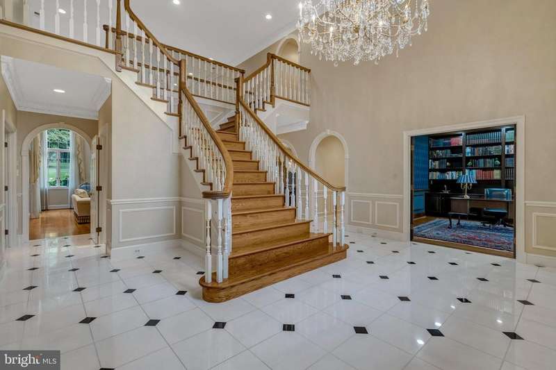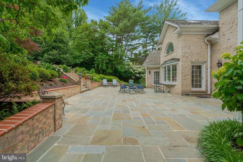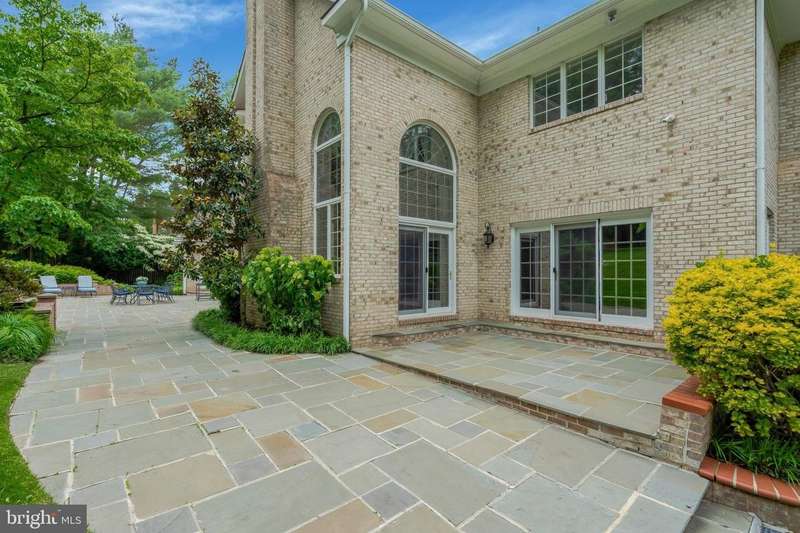 Nestled on nearly a full acre of beautifully landscaped grounds, this exquisite brick colonial offers 7672 square feet of luxurious living space. This is an exceptionally well built and beautifully maintained home by the original owner, very light and bright. The circular drive is flanked by stately brick pillars with outdoor lighting, and a side-load 3-car garage. The double front doors open to a welcoming 2-story marble foyer with a dramatic central staircase. Elegant panel wainscoting, and gracefully arched doorways mirror the shape of the large, beautiful arched transom windows. Just off the foyer, large wooden double doors open to a handsome library with hardwood floors. Chestnut-colored built-in bookshelves and cabinetry are bathed in natural light from two large, beautiful, arched windows. Across the foyer, a spacious powder room boasts marble floors and a stunning marble vanity, adding a touch of opulence. The family room features a gorgeous, stone, woodburning fireplace, hardwood floors, recessed lighting, crown moulding. A large glass door opens to the rear patio. The formal living room is exquisite, with soaring 2-story windows, hardwood floors, an elegant fireplace, and charming doorways. The dining room is equally refined, with its own set of arched doorways, hardwood floors, and exquisite mouldings, making it ideal for entertaining in style. The gourmet kitchen is stunning. It features elegant antique white cabinetry including an integrated panel refrigerator. The gas stove is a Dacor with 6 burners. The jet-cut marble mosaic backsplash adds an artistic touch. There is a second oven in the island, plus there is a built-in microwave and trash compactor. Marble countertops and diagonally laid marble floor tiles harmonize beautifully with the cabinetry. The sunny breakfast area features a vaulted cathedral ceiling and 2 skylights. A large window and a large cozy window seat overlook the back yard. An arched window lets more light onto the upper level. An additional staircase leads from the kitchen area to the primary bedroom. Connecting the kitchen to the garage is a convenient mud room/laundry room with a pantry closet, new GE Profile washer and dryer, a sink, and ample cabinetry. The sun room features hardwood floors, a cathedral ceiling, 2 skylights, and a marble fireplace between built-in cabinetry and shelving. A large glass door leads to the expansive rear patio, perfect for enjoying the serene surroundings. The upper level has hardwood flooring throughout, featuring the primary suite plus four additional generously sized bedrooms, a jack-and-jill bath with a double vanity and water closet, a hall bath, and a sitting area. The bathrooms feature elegant wallpaper, stylish light fixtures, and a skylight in the hall bath. The enormous primary bedroom features a dramatic cove ceiling and a walk-in closet with custom shelving. A luxurious en-suite bathroom with a double vanity, a bidet, and jetted corner tub with picturesque windows. The lower level is quite large and completely finished, with neutral wall to wall carpeting, neutral walls, and recessed lighting. There is a rec room, game room, den/potential 6th bedroom, a full bath with a bidet, and utility rooms. In the rec room there is a fireplace flanked by built-in mirrored shelving, a granite wet bar with a mini fridge, and a wine room. The expansive treed back yard offers privacy and relaxing views, perfect for a pool. The giant 1400+ sq .ft. Flagstone patio wraps around and is accessible from multiple rooms on the main level. This fabulous patio is particularly picturesque and perfect for parties. The spacious garage features a built-in refrigerator, built-in storage cabinets, and automatic door openers. There is an indoor-outdoor intercom system that conveys as-is. Located on quiet cul de sac of 20 estate homes, with convenient access to Tysons, DC, Reagan National Airport, Dulles, Silver Line Metro, Great Falls Park, and Langley Schools.