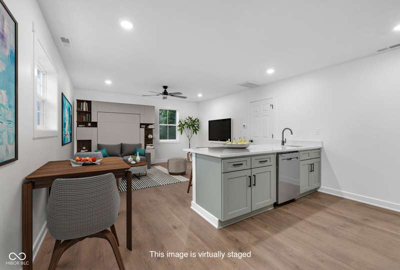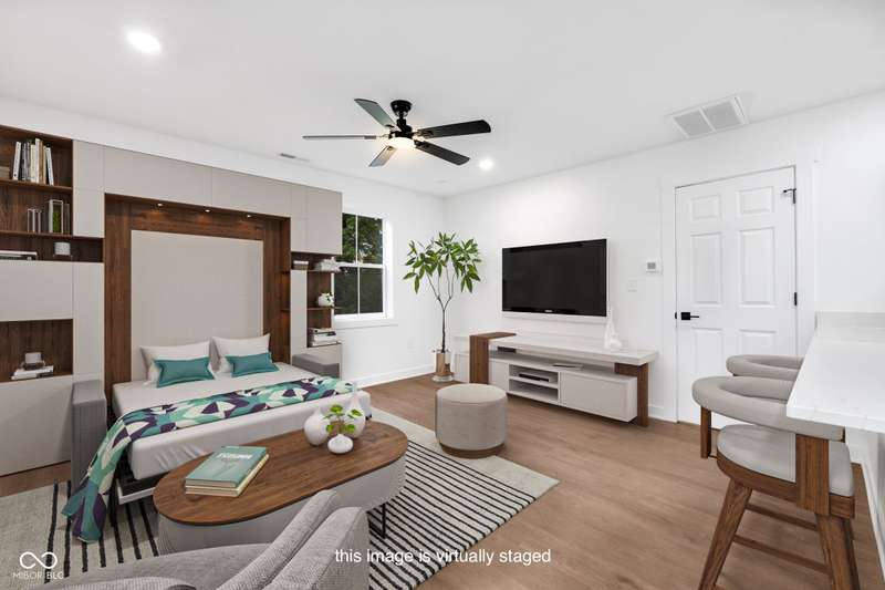 Step into this beautifully crafted, new-build home where thoughtful design meets timeless charm. This 4-bedroom gem has everything you've been dreaming of-spacious rooms, classic finishes, and a layout that flows effortlessly from one space to the next. On the main floor, you'll find a lovely office with french doors, a window seat and plenty of natural light. Step in further to the open but dedicated living room, kitchen and dining space. In the kitchen you'll find gorgeous quartz countertops, a 6-burner stove, and plenty of space to gather with loved ones. The living room has a cozy gas fireplace and access to the spacious deck to enjoy all of Indiana's seasons. Upstairs, you'll find 3 bedrooms, 2 full baths and a spacious laundry room. The primary suite is your own private sanctuary, complete with a luxurious wet room, soaking tub, and dual shower heads-perfect for unwinding after a long day. You'll love the spacious walk-in closet! The fully finished basement, complete with a wet bar rough-in, provides endless possibilities-think game room, media room, or even a cozy lounge to unwind. Another large bedroom with walk-in closet and full bath is a perfect extension of the home and offers many options for bedroom, gym, office. Looking for income potential? The oversized garage leads to a charming studio carriage house with separate entry, full sized kitchen, laundry hookups, full bathroom and dedicated HVAC. Whether you're looking to rent it out, create a home office, or host family, this additional space is beautiful. Nestled in the vibrant Fountain Square neighborhood, you're just steps away from eclectic dining, shops, and all of Indy's hot spots. This home isn't just a place-it's a lifestyle. Move in and start making memories! Notes: Home has dual-zone HVAC, carriage house is 607 SQFT and has dedicated HVAC system.