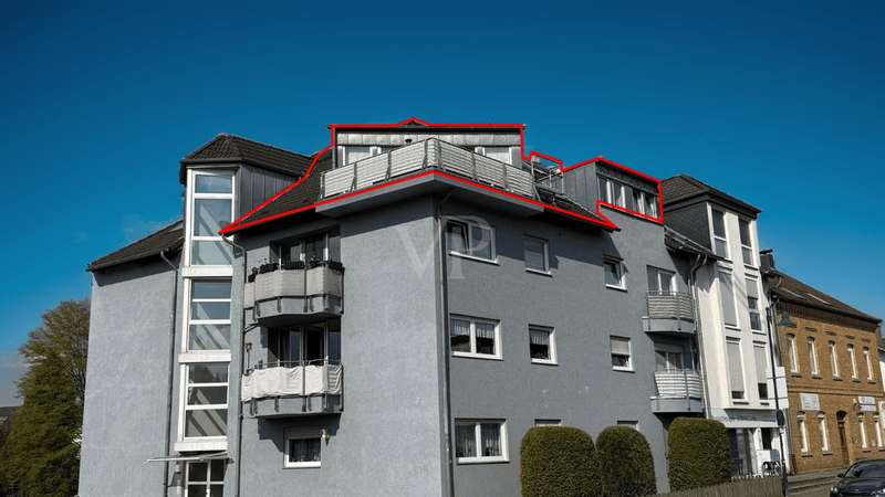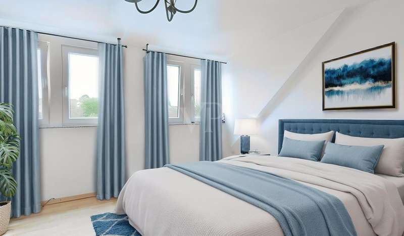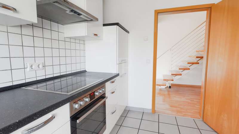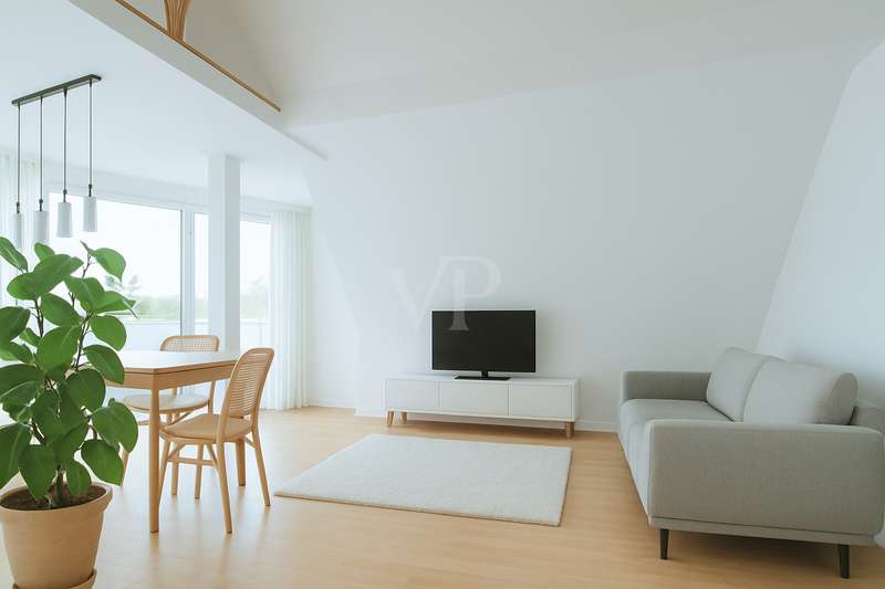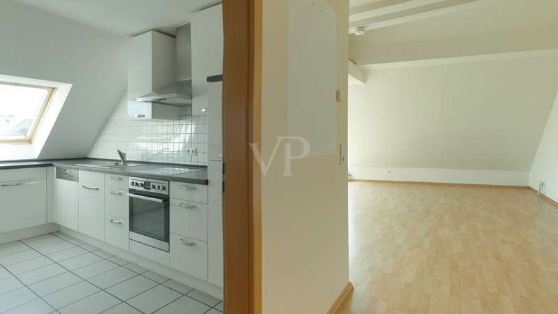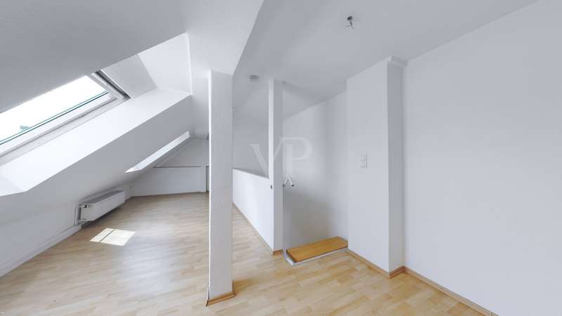 For sale is a well-kept attic apartment built in 1996, which is located in an apartment building with 10 residential units. The living area is approx. 97 m² and offers enough space for comfortable living. The highlight of this apartment is the spacious living and dining area, which offers plenty of room for your personal furnishing ideas. From here you have direct access to the spacious terrace. On the living level, there is also a separate, bright fitted kitchen, a cozy bedroom with dressing room (walk-in closet) and a bathroom with shower and bathtub. A staircase leads up to the open gallery, which is large enough to be used as a room, perfect as a work or hobby area. Additional rooms, such as a cellar and a separate utility room, can be found in the basement of the house. There is also a bicycle storage room. The offer is rounded off by two outdoor parking spaces. The location boasts a very good infrastructure: shopping facilities, schools and public transport links are in the immediate vicinity, making the property an attractive residence in a prime location.
