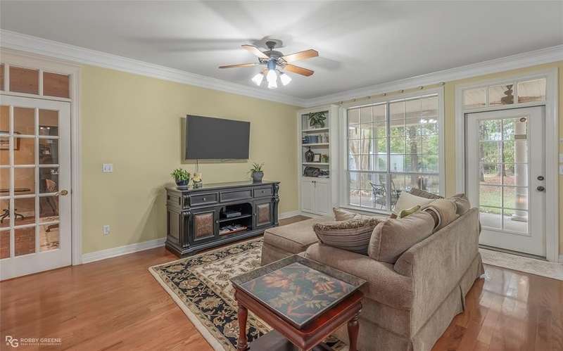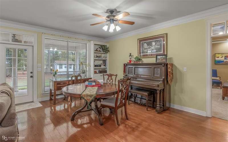 Escape to an extraordinary private estate in the heart of Benton, this exceptional 4-bedroom, 3-bath residence offering over 4,114 square feet of refined Southern living, set on an expansive 77 acres of pure serenity. Impeccable curb appeal with a winding drive way and two stunning ponds. This stunning brick home welcomes you with classic curb appeal, an inviting front porch, timeless dormer windows, and soaring trees that frame the property with natural beauty. Inside, elegant craftsmanship takes center stage with rich wood flooring, detailed millwork, custom built-ins, and crown molding throughout every living space. The spacious living room features a grand fireplace and opens to a bright sunroom embraced by walls of windows. A formal dining room showcases exquisite wall textures, wainscoting, and a sparkling chandelier, while the dedicated office-library offers floor-to-ceiling custom cabinetry and beautiful views of the grounds. The gourmet kitchen is a chef’s delight, complete with warm wood cabinetry, slab granite countertops, electric cooktop with stainless steel separate oven and microwave, an oversized island, and a vaulted tongue-and-groove ceiling that adds both charm and volume. The luxurious primary suite boasts a dramatic multi-layered tray ceiling, French doors to the patio, and a spa-inspired bathroom with dual vanities, gold fixtures, and a soaking tub. Outside, the property becomes a private retreat with multiple large ponds, picturesque cypress trees, meandering shoreline, and a covered floating dock perfect for fishing and quiet evenings. A 4-car garage and a massive outdoor shop provide unmatched storage, workspace, and versatility. With sweeping acreage, water views, wooded seclusion, and incredible craftsmanship, this one-of-a-kind estate embodies the ultimate in privacy, luxury, and Louisiana living. If you are looking for a place that has it all this is it. Room for horses, cattle and so much more. Call today for your private showing!