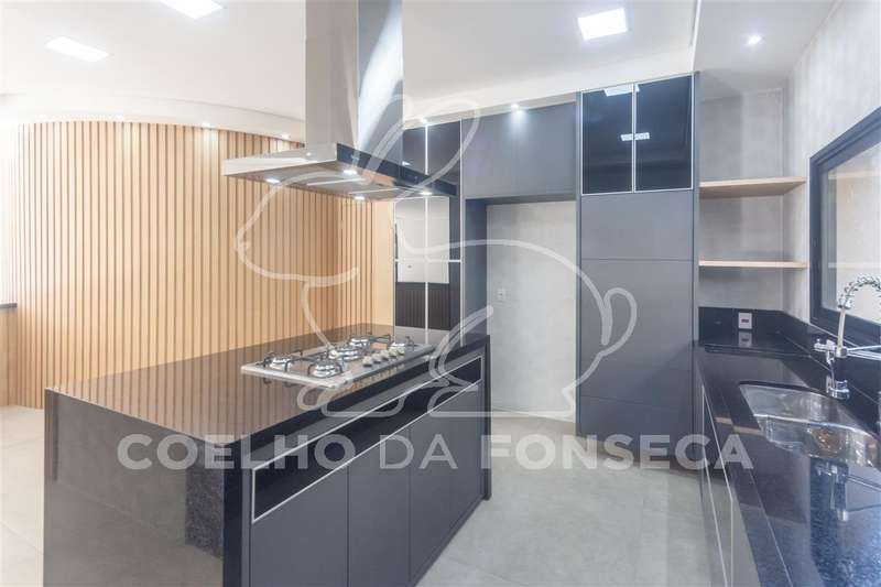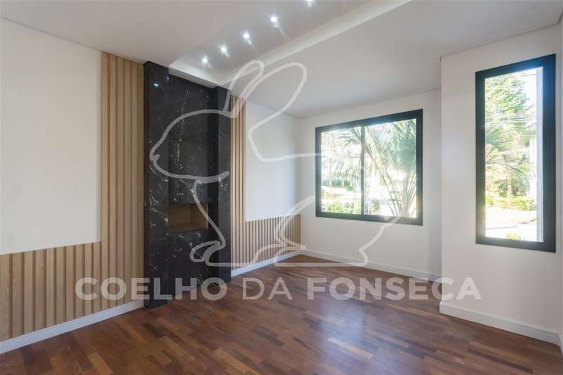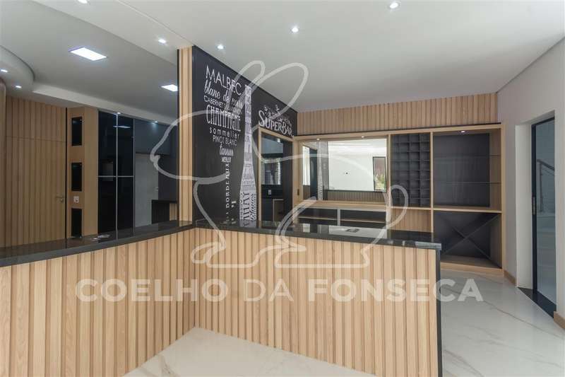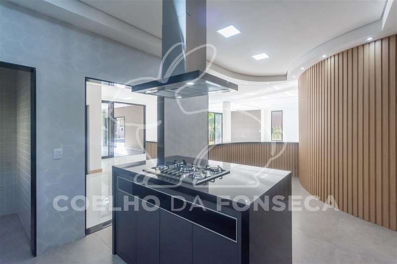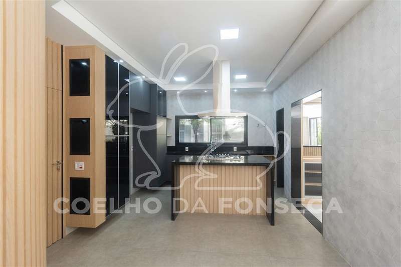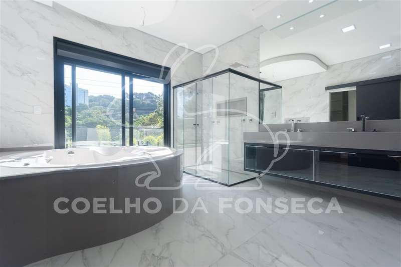 Entrada de veículos porte-cochère com espaço para 3 carros, Hall social amplo e pé direito duplo, lavabo, sala de lareira, escritório com banheiro( pode usar como suíte também), cozinha completa com conceito aberto, despensa, sala ampla para 3 ou 4 ambientes, bar com adega, área gourmet ampla completa, sauna úmida, banheiro, área externa super aproveitada com amplo jardim, ducha, corredor de serviço lateral, piscina com enorme prainha, cromoterapia e pontos de hidro, lavanderia com acesso de serviço a copa no piso superior.