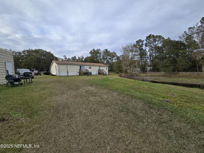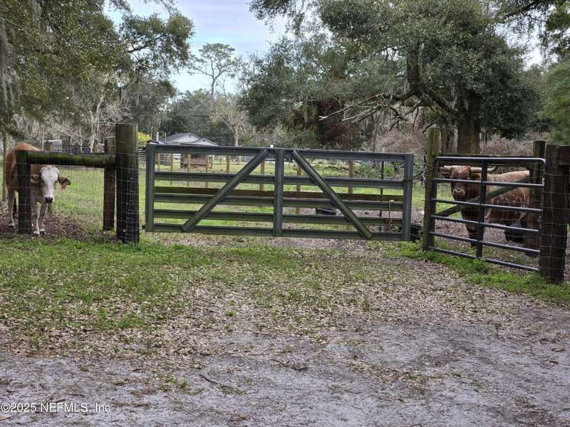 Motivated to sell. Entertaining all reasonable offers. 2 ponds on 9.06 acres+/- offers a perfect blend of tranquility & convenience on this miniature cattle ranch. Nestled in a quiet rural neighborhood, this charming property is just minutes from upscale town center shops & restaurants of Yulee, FL. Ranch features a cozy manufactured home with a new roof, stainless steel appliances, fresh paint, new carpet, & luxury plank floors. Grounds include a large outbuilding for RVs, cars, trucks, or large farm equipment. The fully fenced property is equipped w/ separate pump house & extra workshop w/ electricity, corrals, barns, & feeding troughs for various livestock, ideal for farm living. Livestock & utility vehicles are negotiable w/ property. Embrace the tranquility & charm of rural life while staying close to modern amenities. Luxurious Amelia Island is only 11.7 miles away, & Historic Downtown Fernandina Beach is just 13.9 miles away. Minutes from Half Moon Island Preserve & Boat Ramp