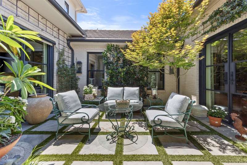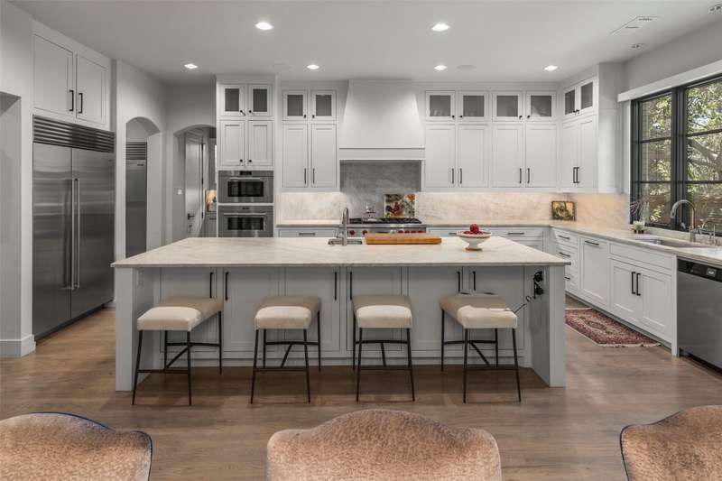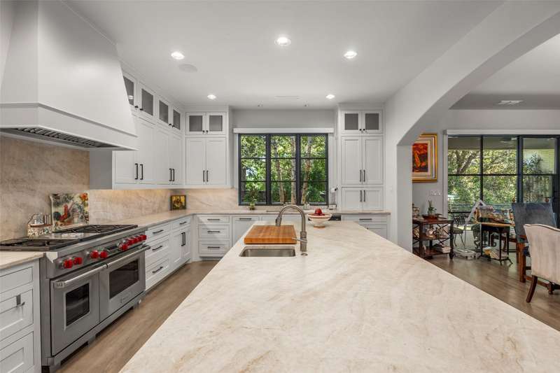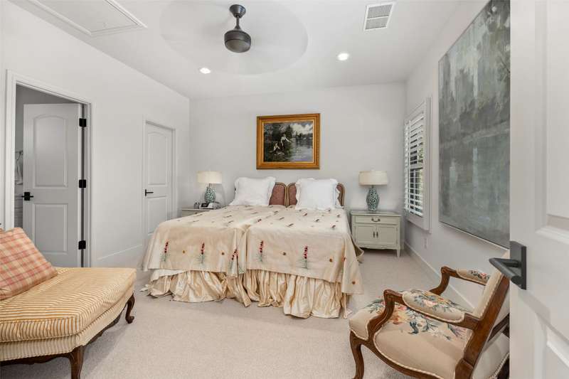 Beautiful 4-bedroom, 4-bath home in gated Westover Square. Designed for easy living with most spaces on the first floor, plus an upstairs retreat with bedroom, bath, and sitting area. Light-filled open kitchen-living area features a wall of windows and double doors to the covered patio with built-in grill. Chefs kitchen offers a large island, built-in refrigerator, commercial gas range, double ovens, dual sinks, and a dry bar with wine cooler. Inviting front courtyard and low-maintenance yard complete this move-in ready home.