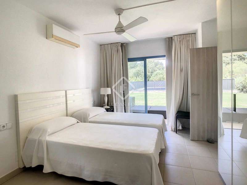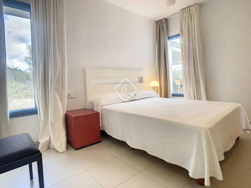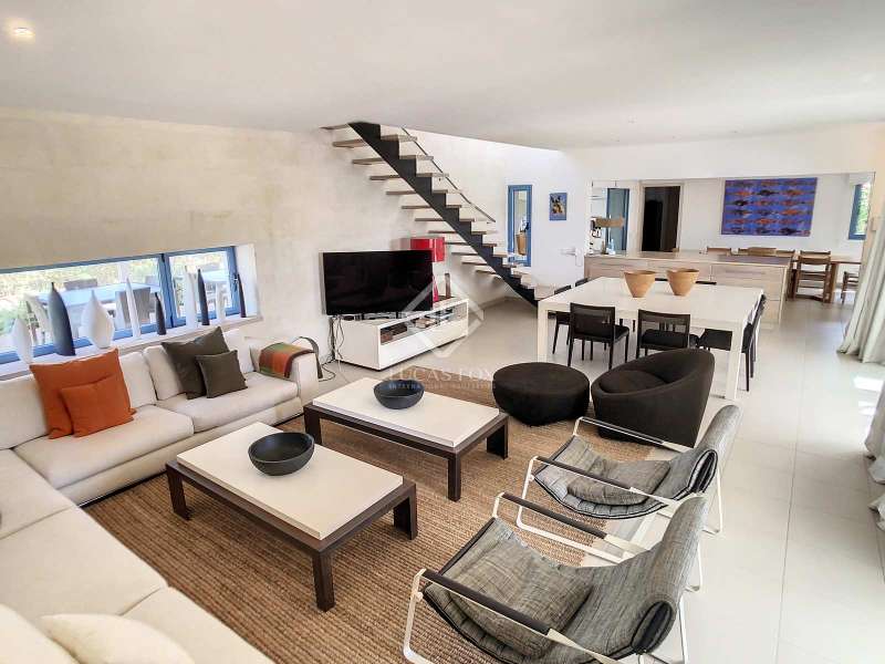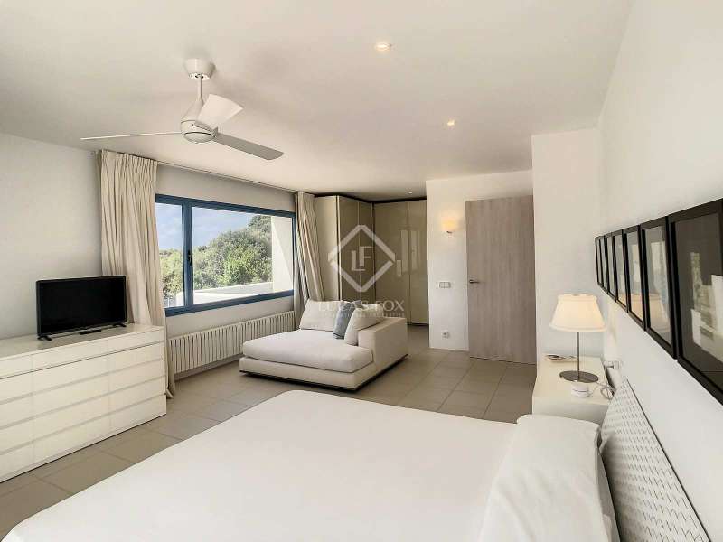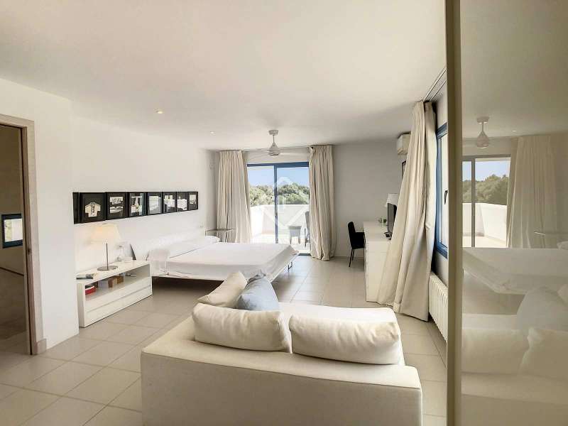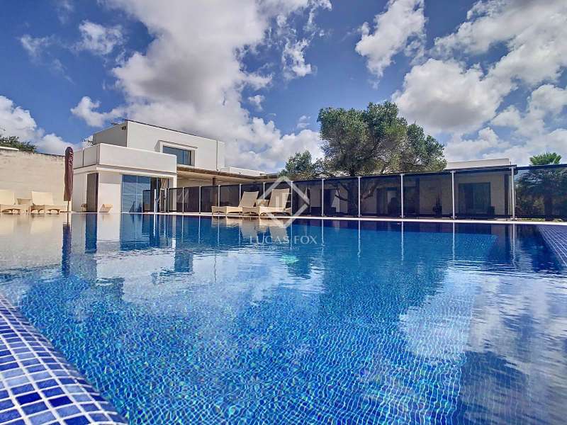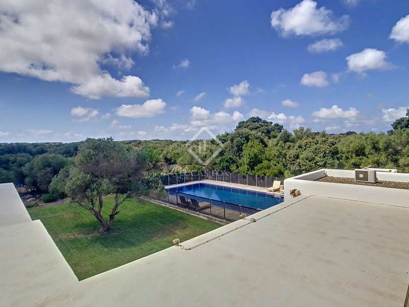 Lucas Fox presents this 300 m² modern villa designed by a well-known architect that is located on a private 18,000 m² plot with an vegetable garden and fruit trees. It is located on the outskirts, but a short distance from Maó and Sant Luis. The entrance to La Finca begins on a country road, after crossing an automated gate. The property is distributed over two floors and a separate annex for guests. Arriving at the villa, we see a modern style door covered by a small terrace. From here there is access to the terraces with views of the countryside and which overlook the pool that is fenced to protect the little ones. The house welcomes us with a entrance hall that leads to the spacious living-dining room, with an open staircase and access to two double bedrooms with private bathroom and a toilet. From this bright living room, the large sliding doors open onto the large terrace where there is space to enjoy the views of the garden and the pool. From the entrance hall there is also access to a utility room, a private garage with a storage room room and a water boiler room with a toilet. On the first floor we find the night area with the main bedroom with a private bathroom, large built-in wardrobes and access to the terrace with sun loungers and views of the driveway and the surroundings of the house. Through a large window we have views of the garden and the pool. The house has high-quality finishes, with elegant details, such as underfloor heating, air conditioning and double-glazed windows. Returning to the entrance of the house and going out to the terrace, we find on our left a guest annex with a very well decorated private terrace. The annex has several entrances with huge sliding doors that lead to a large living-dining room with beautiful furniture and two double bedrooms with private bathroom and large closets; all overlooking the pool and garden. In the exterior area, near the pool, we also have another annex with a bedroom and private bathroom, a terrace and a clothesline. The extensive plot has a storage area behind the house for bicycles or other utensils. It has several areas of fruit trees, an vegetable garden and a neighbor's donkey who cultivates the land. We also find a shed for the water supply and the storage of garden tools. A unique, elegant, minimalist property with special details to live all year round or spend seasons with family and/or friends. Contact us for more information or to arrange a visit.