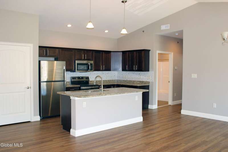RENT SPECIAL - HALF OFF 1st MONTH'S RENT! Welcome home to Mill Hollow living! Experience everything you could dream of in this upscale community, complete with breathtaking views of the Helderberg Mountains. This stunning second-floor 2-bedroom, 2-bath chalet features 9-foot ceilings, oversized windows, and a sliding glass door leading to your own private balcony. Enjoy an open floor plan with granite countertops, brand-new stainless steel appliances, a kitchen island, central AC and an in-unit washer and dryer. The spacious primary suite offers a large walk-in closet, ceiling fan, and a luxurious bathroom with granite counters and double sinks. Residents have full access to the community's Clubhouse, theatre, kitchen, fitness center, in-ground saltwater pool, gazebo overlooking scenic pond, and newly added gated dog park?with pickleball courts coming soon! Plus, our game room and communal area provide additional spaces for entertainment and relaxation. Garages are available for rent, on a month to month basis and there's plenty of on-site parking. Don't wait?schedule your private showing today. You won't be disappointed! Get ready to call this your new home for the Holidays.