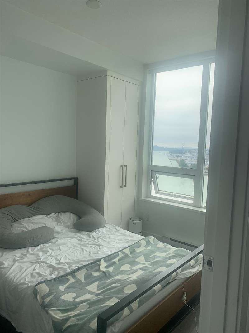 PRICE IMPROVEMENT. RiverSky 2 by BOSA, located in Central Downtown New Westminster. This 1 bedroom, 1 bathroom unit on the 25th floor features panoramic South West views of the Fraser River and beyond. Open-concept modern kitchen features a gas stove, soft-close cabinetry, composite stone countertops, an integrated refrigerator, integrated dishwasher. The building offers 24 hour concierge service. Amenities include a fully equipped gym, a rooftop terrace and green space with water views, lounge seating, and BBQs. Pet-friendly. High Walk Score. Conveniently close to Transit, The Quay, shops, restaurants, cafes all on your doorstep right on the Fraser Riverway. Parking 168 and Locker 22.