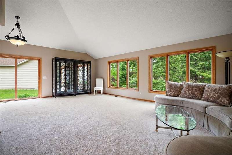 $10,000 Credit to Buyer at Closing! Use those savings for flooring, paint, lighting, or other cosmetic updates to make this home your own. This 2,877 sq ft Hans Hagen home in Hudson’s Red Cedar Canyon features 15 ft vaulted ceilings, a main-level office with fireplace, and a spacious primary suite with private bath and walk-in closet. Main floor laundry adds convenience, while the patio is perfect for relaxing. The finished lower level offers two bedrooms, a 3/4 bath, family room, dry bar, and sauna. Brand new A/C installed, with a brand new roof coming soon for peace of mind. HOA of $129/month covers lawn care and snow removal. Close to trails, parks, and downtown Hudson—this home blends comfort and convenience.