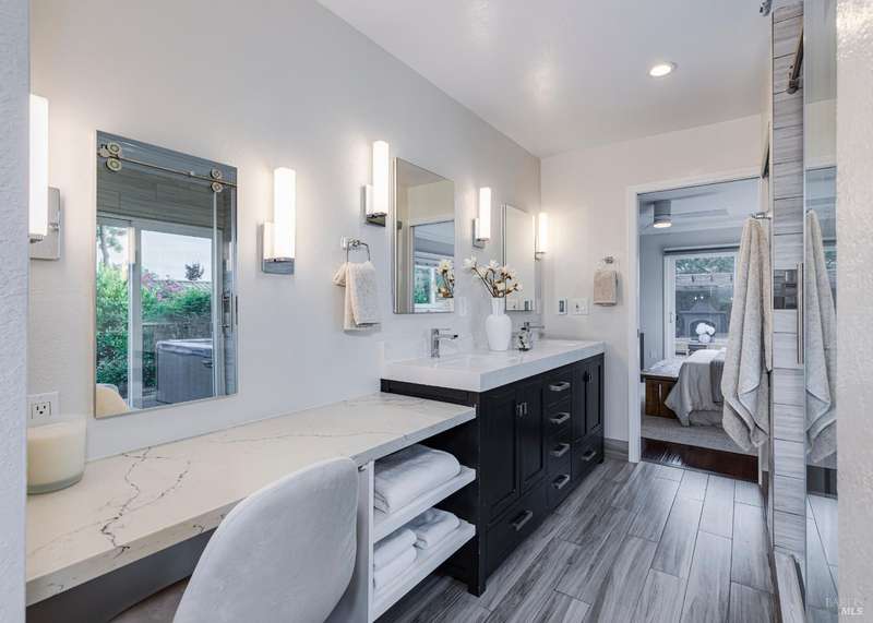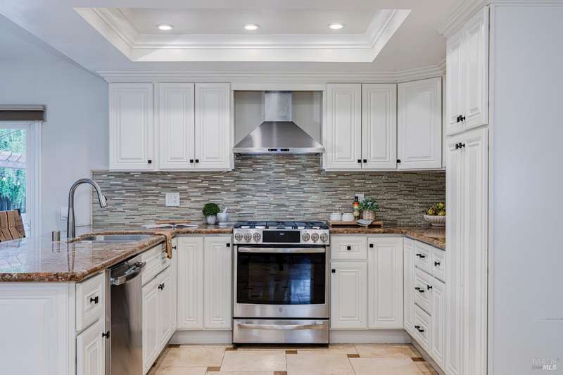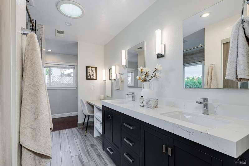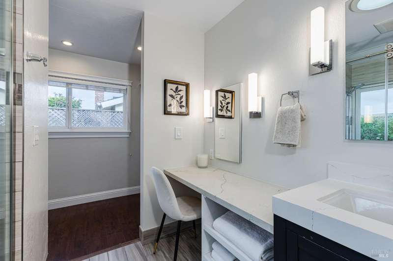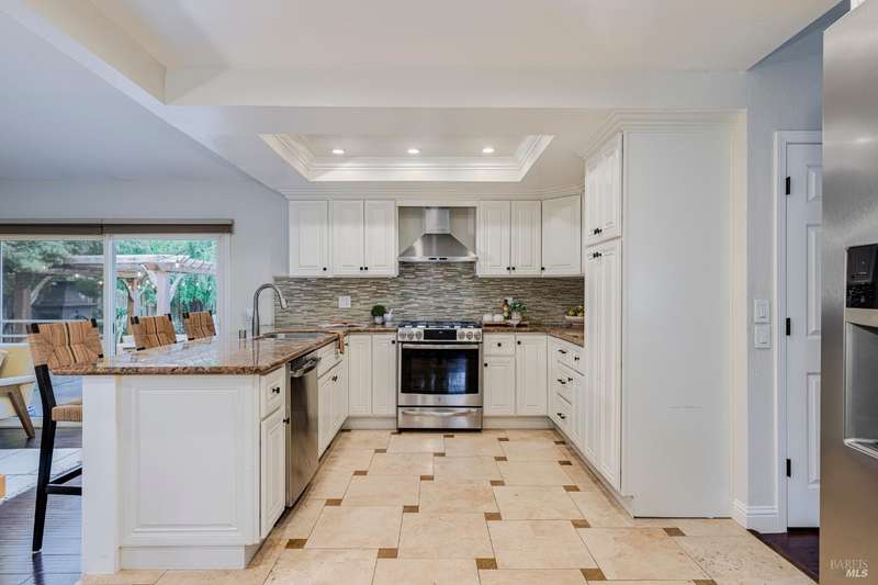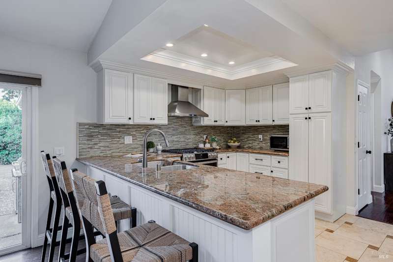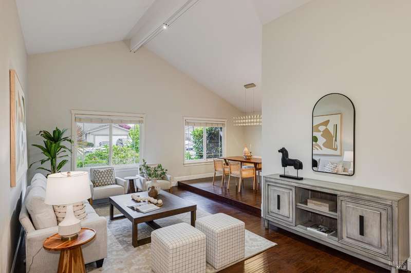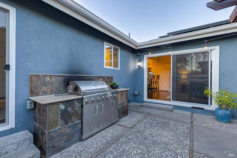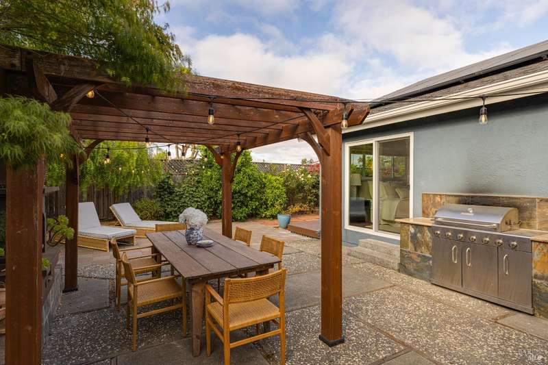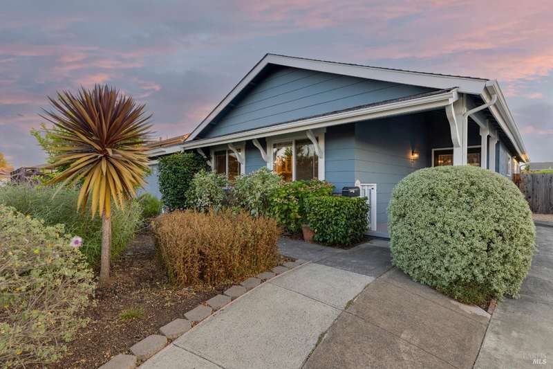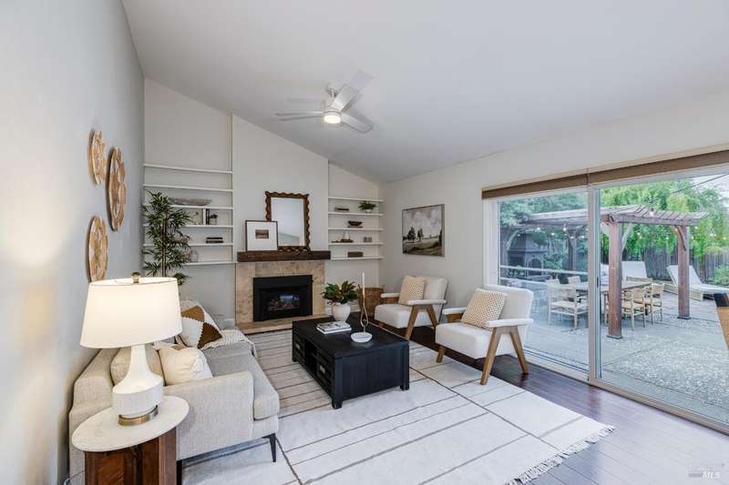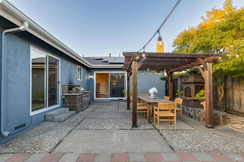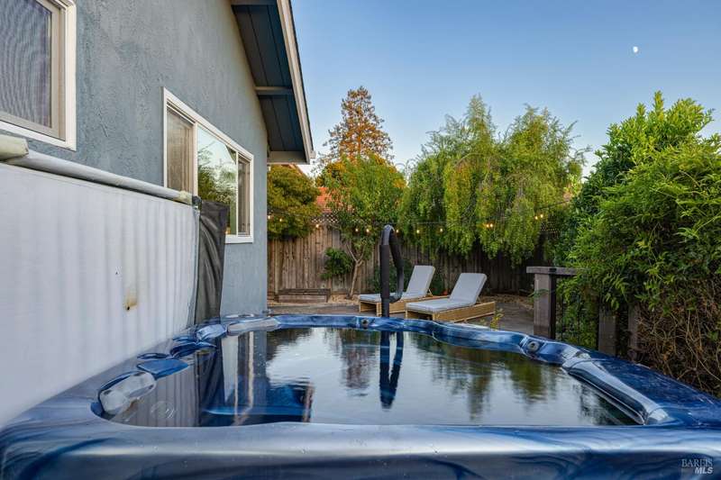Welcome to this incredibly sweet and thoughtfully updated single-level home that truly checks all the boxes. Step inside to find a bright, airy, and welcoming interior filled with natural light, soaring ceilings, and an open + flowing layout where your life can seamlessly unfold. Featuring three bedrooms, two bathrooms and a flex space in the primary suite perfect for a home office, additional closet space, a reading nook - whatever fits your needs! A home that is designed for comfort + everyday living, you'll find such ease in the floorpan - a modernized kitchen both stylish + functional with butcher block counters + lots of storage opens beautifully into a cozy yet spacious family room with a statement fireplace and doors to the dreamy backyard. Venture outside and fall in love with the lush landscape of fruit trees, thriving vines, gorgeous blooms and abundant garden beds - an outdoor haven ideal for al fresco dining in the charming patio area, complete with a built-in kitchen and a soothing hot tub to unwind in. Additional features include a separate living room + dining room, lots of parking with two driveways, A/C, solar + more! Tucked away in a wonderful East Petaluma neighborhood, this home offers a lovely + highly desired blend of convenience, privacy, space + warmth.