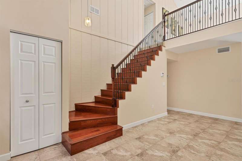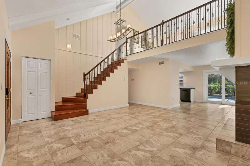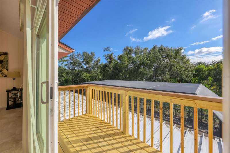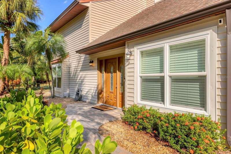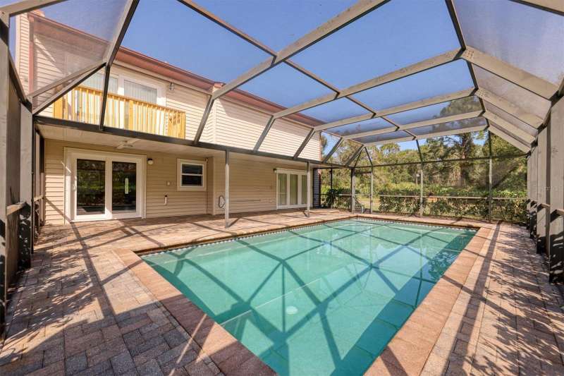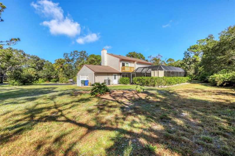 Spacious two-story pool home on over one acre in the desirable Ravenwood neighborhood! This updated 3-bedroom, 2.5-bath residence offers 2,156 sq. ft. of air-conditioned living space and a flexible layout designed for comfort and entertaining. Enjoy peace of mind with a 2025 water heater, screen enclosure, and a deck overlooking the private, tree-lined yard. Features include consistent tile flooring throughout upstairs and main floor, 2007 Windows and Doors, a newer kitchen with Thomasville cabinetry, Bosch dishwasher, GE dual oven range, and wine cooler. The first-floor primary suite provides ease and privacy, enhanced by a walk-in closet and bay window that fills the room with natural light. The first floor living room features a cozy fireplace and its own bay window overlooking the front yard. Upstairs is a full bath, two additional bedrooms each include walk-in closets, and a loft area that provides an inviting gathering space with sliding doors that open to the upper deck. Outdoor living space has a covered lanai, with a heated pool, screened paver deck, and outdoor shower — perfect for year-round enjoyment. The oversized garage includes laundry and a reinforced garage door and custom flooring with a exterior door to the back. Vinyl siding, a generous driveway, and a low annual HOA of $222 yrly add to the appeal. No rentals allowed. Set on a 1.09-acre lot backing to a quiet church property, this home combines privacy, thoughtful updates, and a convenient Sarasota location just off Desoto Road between Lockwood Ridge and University Blvd.
