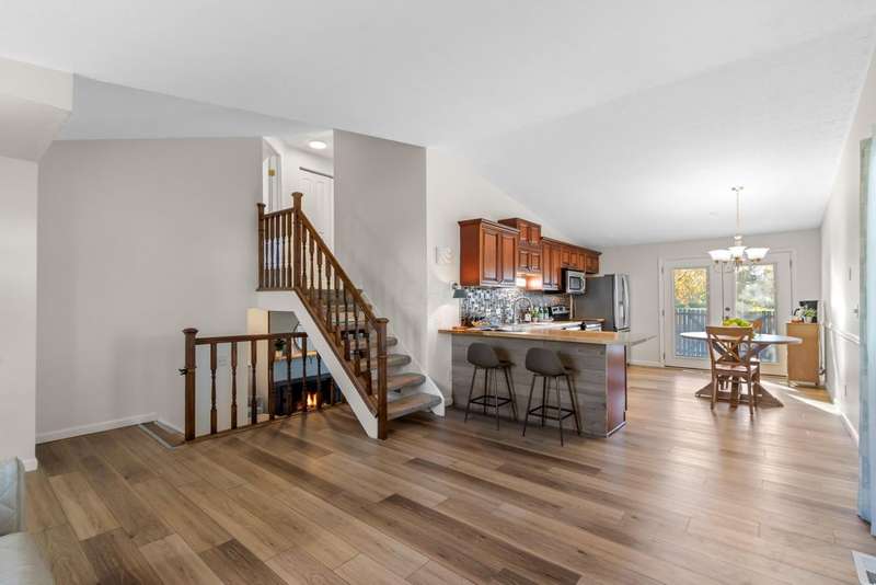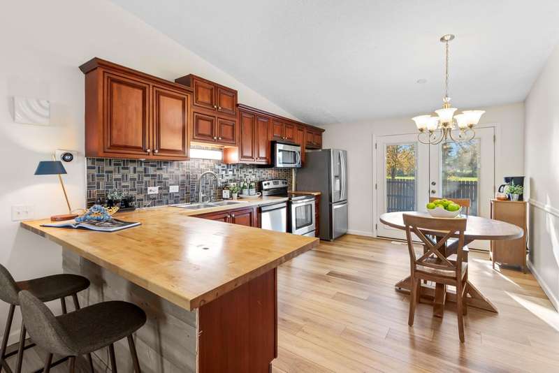 This Charming 3-Bedroom, 1.5-Bath Home In Independence Village Combines Style, Space, And Everyday Comfort. From The Moment You Step Inside, The Vaulted Ceilings And Bright Natural Light Create An Inviting Atmosphere. The Open Main Level Flows Seamlessly Into An Open Kitchen Featuring Rich Cabinetry, Stainless Steel Appliances, And A Breakfast Bar, Perfect For Casual Dining Or Entertaining. Downstairs, The Finished Lower Level Offers A Cozy Fireplace, Stylish Built-Ins, And A Half Bath, Providing A Versatile Space For Relaxing Or Gathering. Upstairs You'll Find Three Comfortable Bedrooms And An Updated Full Bathroom With Modern Finishes. Outside, The Fenced Backyard Backs Directly To Independence Park, Offering A Peaceful View. A Patio And Mature Tree Create A Private Spot To Dine, Lounge, Or Unwind. Conveniently Located Near Shopping, And Commuter Routes, This Home Checks Every Box For Easy Living.