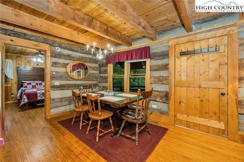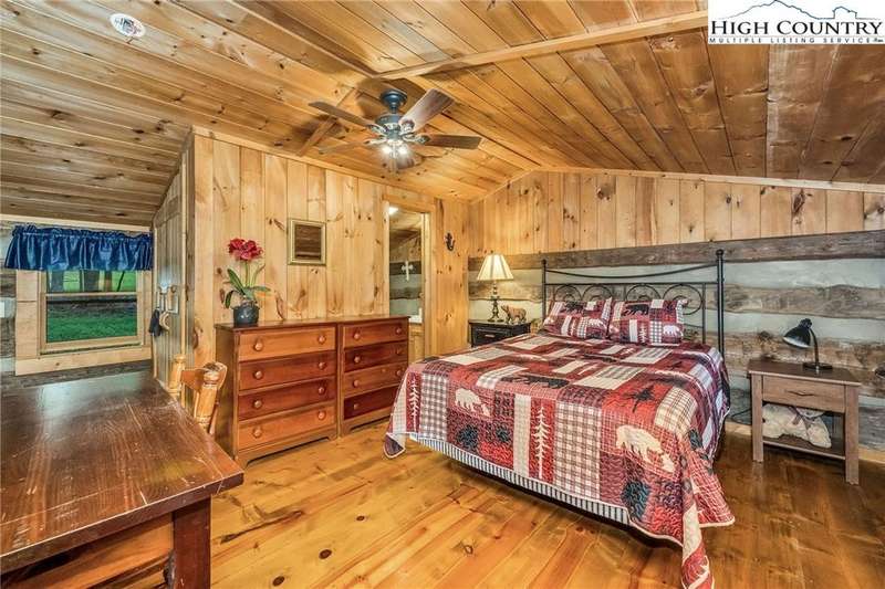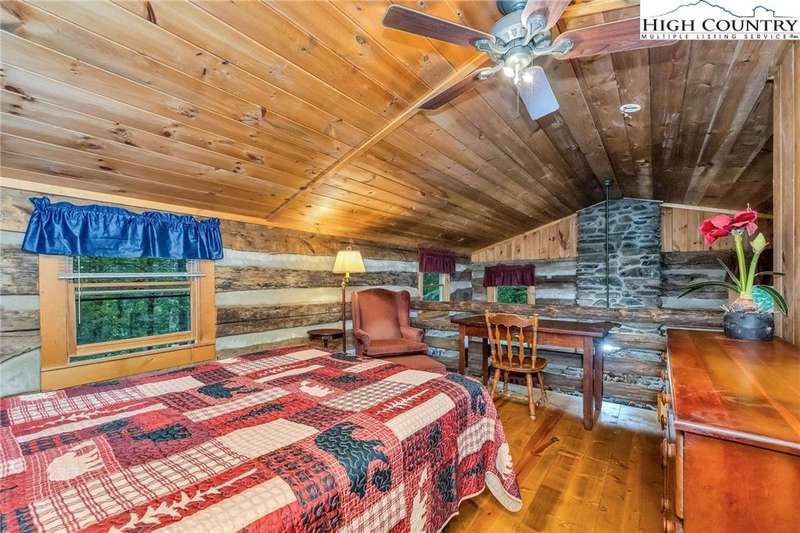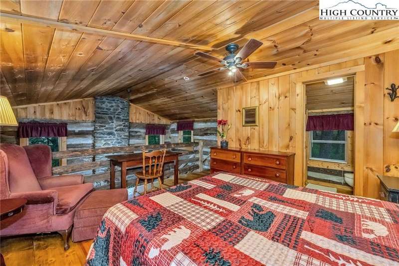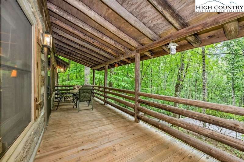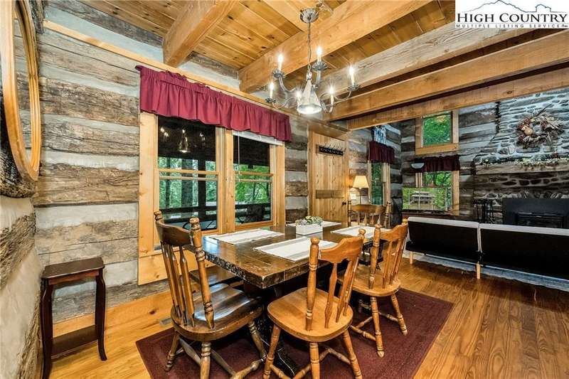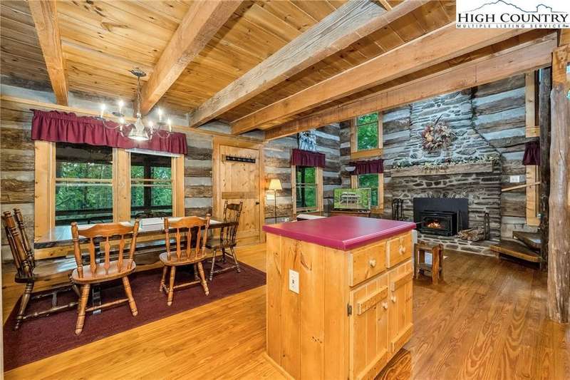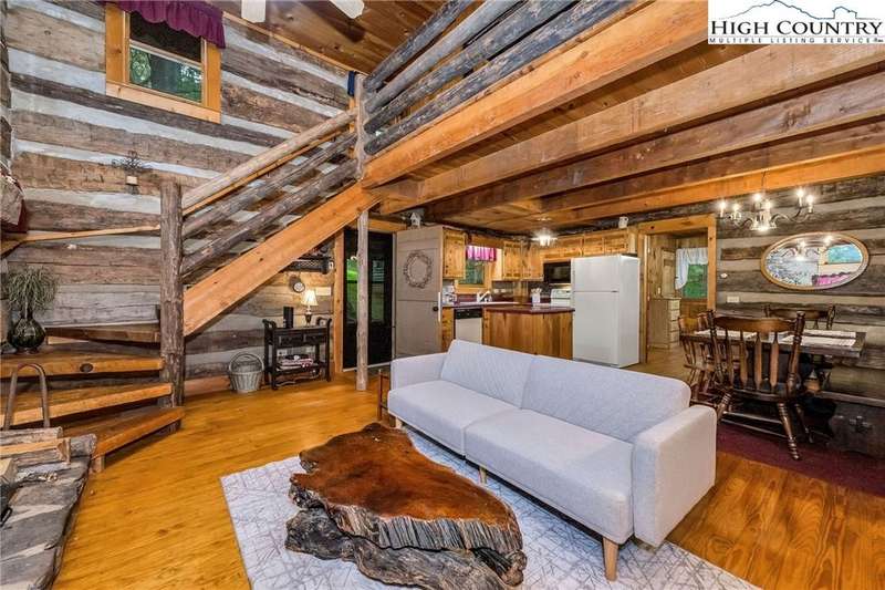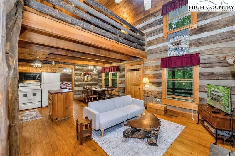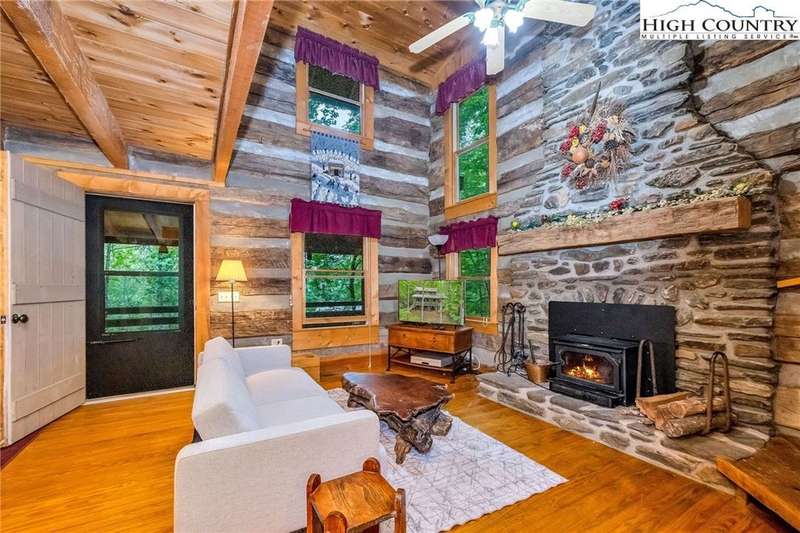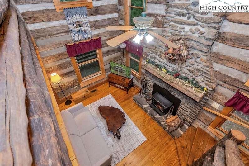 Rustic Charm in the Beloved Stonebridge Community. Experience the warmth and character of this beautifully crafted antique-style log cabin, tucked away in the highly desirable Stonebridge neighborhood. This two-story retreat combines classic log home craftsmanship with the comfort of modern amenities, making it the perfect High Country escape. The main level welcomes you with a bright, open layout where the kitchen, dining, and living areas come together seamlessly. The kitchen offers a spacious island, ample storage, and direct access to a full-length back porch. In the great room, a striking two-story stone fireplace sets the tone for cozy evenings by the fire while walk out access to the covered front porch is perfect for dining al fresco or relaxing in the cool mountain breeze. Also on the main floor, you'll find a comfortable primary suite with private full bathroom, and a convenient laundry closet. Upstairs, a roomy sleeping loft with its own full bath provides plenty of space for guests or family. Outdoors, porches create multiple spots to enjoy grilling, entertaining, or simply soaking up the peaceful wooded surroundings with seasonal mountain views. Centrally located between West Jefferson, Boone, and Blowing Rock, this home offers the perfect blend of quiet mountain living and easy access to shopping, dining, and outdoor adventures. Schedule your showing today and make this inviting log home your vacation retreat, year-round residence, or weekend getaway in the mountains.