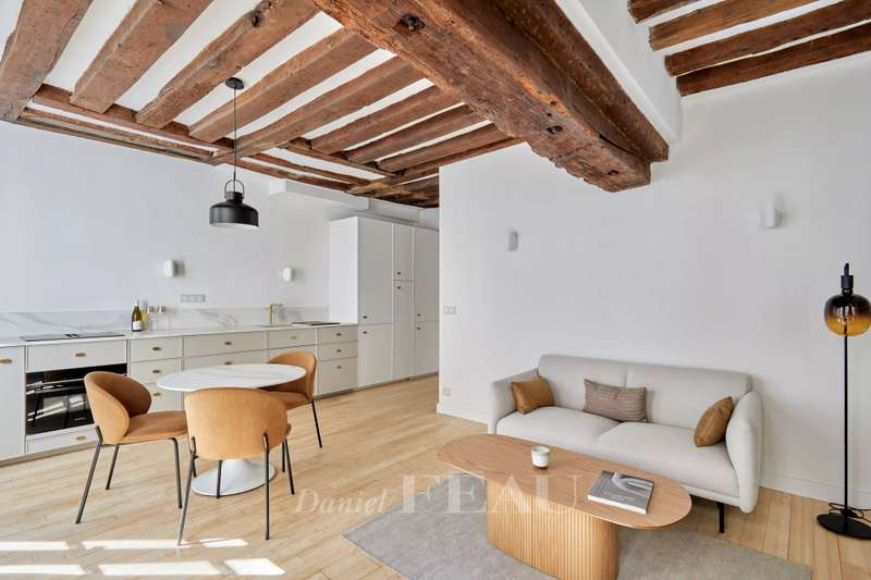 In the heart of Saint-Germain-des-Prés, one of Paris' most iconic and sought-after neighborhoods, discover this gem nestled in a peaceful pedestrian street. Located on the third floor of a small historic building, which has been renovated and secured, this 40 m² one-bedroom apartment has just been completely renovated with high-end materials and amenities. Designed by its owner, an interior designer, it combines elegance, refinement, and functionality with an optimized layout: entrance hall with dressing room and closet/laundry room, bright living room overlooking the street with a beautiful open-plan kitchen, lounge, office space, quiet bedroom overlooking the courtyard with en-suite bathroom (walk-in shower, dressing room, storage), and separate toilet. This prestigious property is ready to move into and is sold furnished and equipped with premium brands. It combines old-world charm (high ceilings, exposed beams, solid wood flooring, marble fireplace) with the best in contemporary comfort. Its excellent DPE(D)/GES(B) energy rating, rare in older properties in Paris, guarantees a long-term investment. An ideal personal or professional pied-à-terre and a first-rate investment property.
