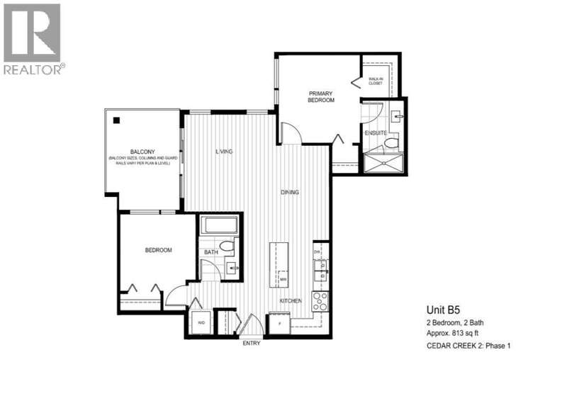 Welcome to Cedar Creek by Ledingham McAllister, enjoy modern living in a fast-growing community. One of the best out 2 bed 2 baths in the building. This court yard facing corner unit offers overheight ceilings complementing its open layout. With a gourmet kitchen equipped with full-sized stainless steel appliances. updated laminate flooring, and sleek modern cabinetry. Step out to your oversized covered balcony-ideal for hosting or winding down. The spacious primary bedroom has a walk-in closet and ensuite. The second bedroom is perfect for guests, work-from-home, or future family needs. Both bedrooms are generously sized. The home includes 1 parking + 1 storage locker. Amenities include gym, guest suite, car wash station, and more. Pet and rental friendly &Walking distance to SkyTrain, shopping, parks, and schools. (id:58403)