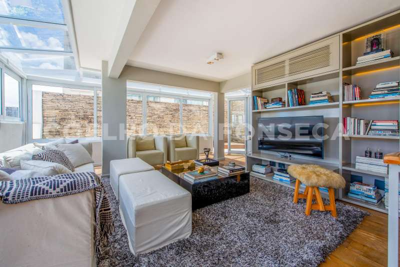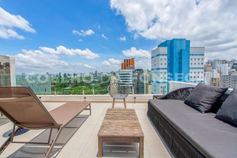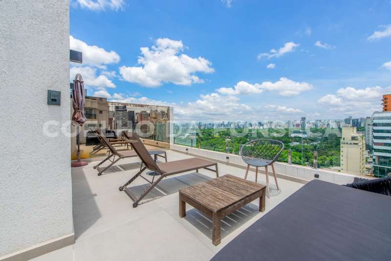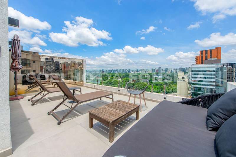 Cobertura no bairro Jardim Paulista com 148m² área privativa/útil, 1 dormitório(s), 1 suíte(s), 2 vaga(s), 3 banheiro(s), churrasqueira, escritório, terraço, mobiliado (a), ar condicionado, dep. de empregados, reformado (a).