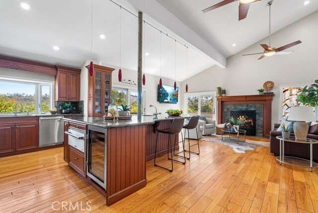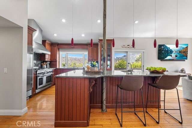 Extensively Renovated View Home Offered at $1,895,000 Welcome to 12782 Periwinkle Drive—a private North Tustin retreat where peaceful mountain views and lush surroundings set the stage for modern living. Thoughtfully updated and meticulously maintained, this residence offers 5 bedrooms, 3.5 baths, with and a versatile bonus room downstairs that could be the 5th bedroom, with private entrance. Spanning approximately 3,400 sq. ft. on a 13,524 sq. ft. lot, the home combines comfort, functionality, and flexibility. Inside, soaring ceilings and rich wood floors elevate the light-filled interiors, while expansive windows frame serene views. The living room just beyond the double-door entry is ideal for entertaining, flowing seamlessly into a formal dining room with built-in buffet. The chef’s kitchen is a showpiece, featuring Sub-Zero and Thermador appliances, a large center island, and a walk-in pantry—all opening to an inviting family room with a fireplace. The primary suite retreat offers a spa-inspired bath complete with a glass enclosed shower and soaking tub, and dual vanities. Outdoors, resort-style living awaits with a Pebble Tec saltwater pool and spa, built-in BBQ kitchen, poolside cabana, wraparound deck, and lush Rogers Gard ens landscaping. The expansive lawn and play area make this the perfect setting for both relaxation and recreation. Additional highlights include an oversized two-car garage with cabinetry and workshop, new dual-zone Carrier HVAC systems, whole-home sound, security cameras, water filtration, an indoor laundry and storage room. An oversized attached two-car garage and driveway parking for four cars, plus and sideyard R.V access for additional parking. Together, these features create an exceptional blend of privacy, comfort, and resort-style amenities—all in the heart of North Tustin.