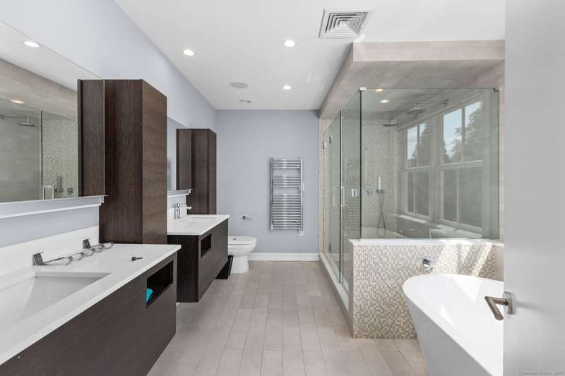 Timeless Elegance Meets Modern Luxury in Ridgefield, CT. Nestled on a beautifully landscaped 0.86-acre lot in southern Ridgefield, just minutes from the heart of the village, this masterfully restored 3-bedroom, 5.5-bath residence blends the warmth of 19th-century charm with the sophistication of contemporary living. Originally built in 1900, the home has been thoughtfully updated to showcase enduring craftsmanship alongside high-end modern finishes. At the heart of the home is a stunning transitional-style gourmet kitchen, complete with a spacious center island, custom cabinetry, a walk-in pantry, and a casual dining area, ideal for everyday living and entertaining. A formal dining room provides an elegant setting for gatherings, while the inviting living/family room is complemented by a convenient powder room. A main-level laundry room enhances the home's seamless and functional layout. Upstairs, the luxurious primary suite offers a peaceful retreat, featuring a generous walk-in closet with custom built-ins and a spa-inspired bath with a soaking tub and oversized shower. Two additional en-suite bedrooms each include their own walk-in closets, providing comfort and privacy. The third floor expands the home's versatility with a flexible layout, including a dedicated office or study nook and a bonus room perfect for crafts, hobbies, or an additional workspace, complete with built-ins. Step outside to experience year-round beauty in the professionally designed gardens...