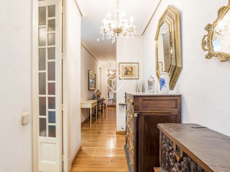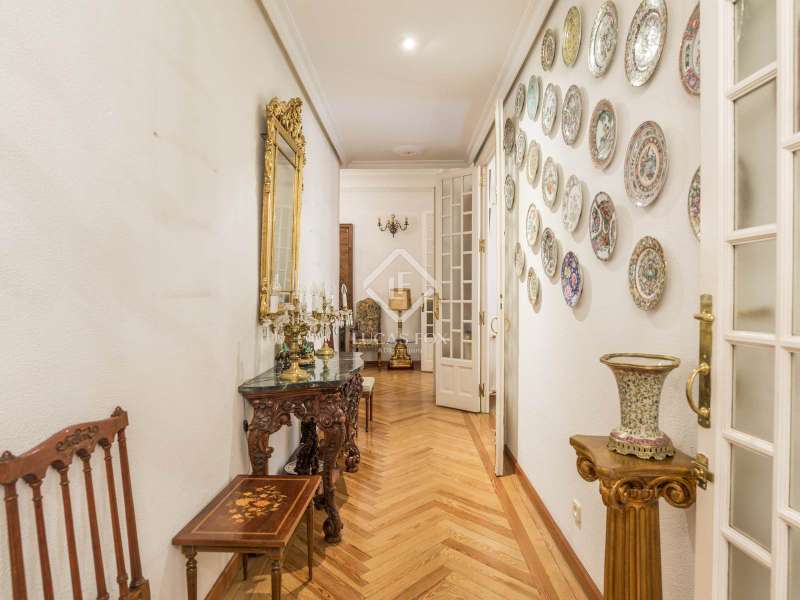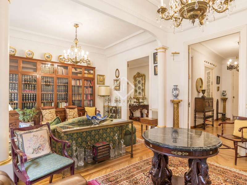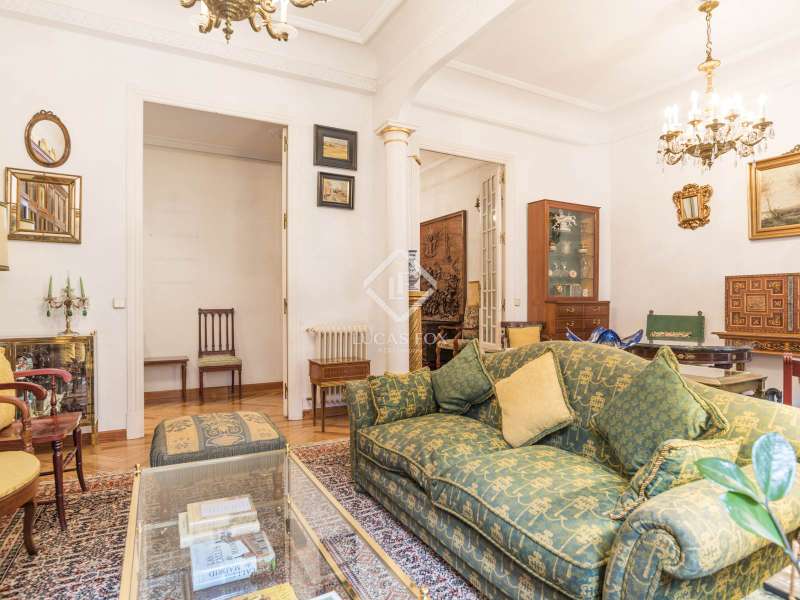 Exclusive stately property next to Gran Vía, Madrid In the heart of Madrid, just steps from Gran Vía, lies this magnificent 243 m² exterior property , located on the second floor of a classic building with a concierge service, 24-hour security cameras, and two elevators. Its emblematic façade and four balconies overlooking the street provide abundant natural light and traditional charm. The property stands out for its ceilings over 3 meters high, original herringbone wood floors, and elegant moldings, which convey the stately character of Madrid's architecture. It features five bedrooms, three full bathrooms, a spacious entrance hall hall, two living rooms, and a large kitchen, offering a versatile layout with the possibility of dividing it into two independent units. It includes a private 9 m² storage room and access to a communal room for meetings or events. The location is unbeatable: on a quiet street, yet surrounded by theaters, restaurants, shops, and excellent public transport links. Ideal as a main residence or high-value investment in one of Madrid's most vibrant and touristic areas .