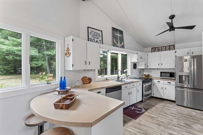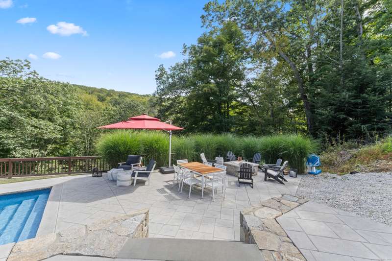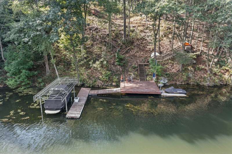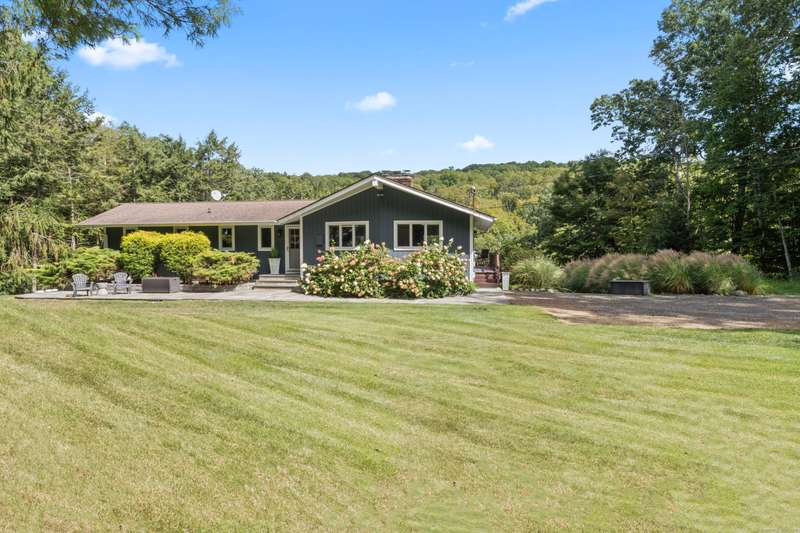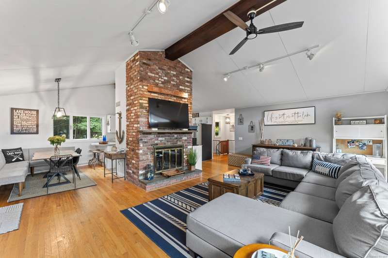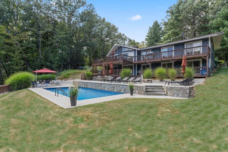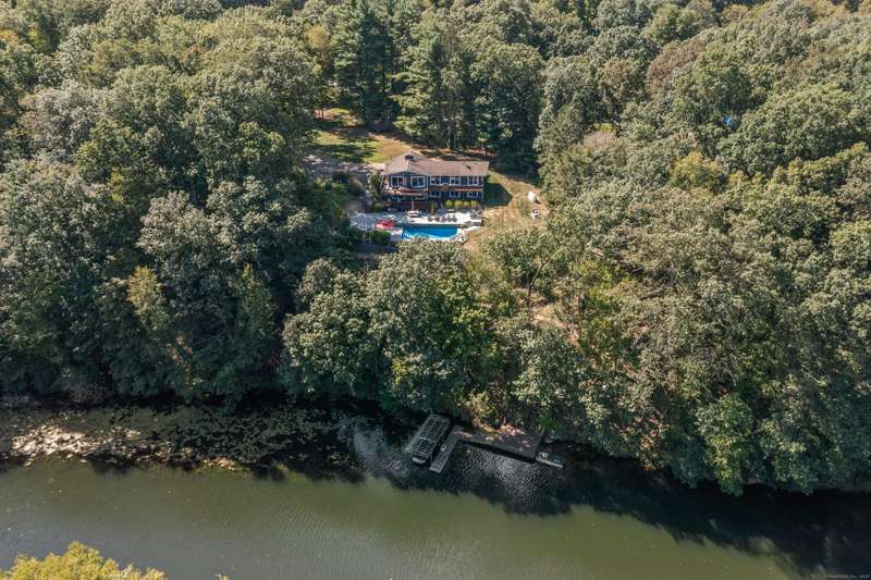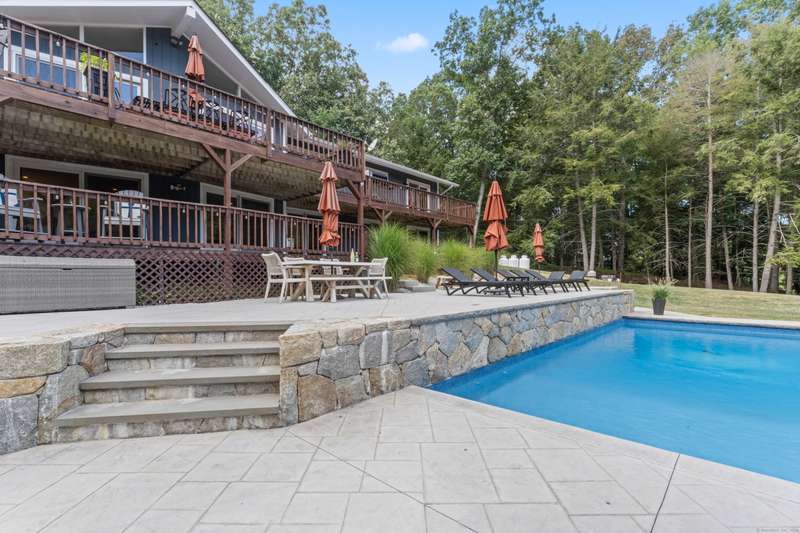 Live your Best Life at the Lake & make very day a count! Talk about multiple rooms with views from all vantage points. Experience lakeside at this beautiful contemporary ranch privately set on 2+ level acres boasting captivating views & lake frontage on Lake Lillinonah. A rare opportunity to own a direct waterfront retreat, this property features its own private 400 sqft dock-perfect for fishing/boating/jet skiing/kayaking or simply soaking in the sunshine & surrounding natural beauty. Whether making this a permanent residence or city escape, every day will feel like a vacation! The inviting main level boasts a sun filled Vaulted Great Room/frplc with walls of multiple sliders allowing natural light to cascade throughout bringing the outdoors in & opens to a mahogany deck for captivating sky, pool & lake views. The home is an entertainers dream with an easy open flr plan-the Great Rm flows into the dining area & white bright kitchen.The home lives like a 5 Bdrm with 3 Bdrms/2 trendy ba