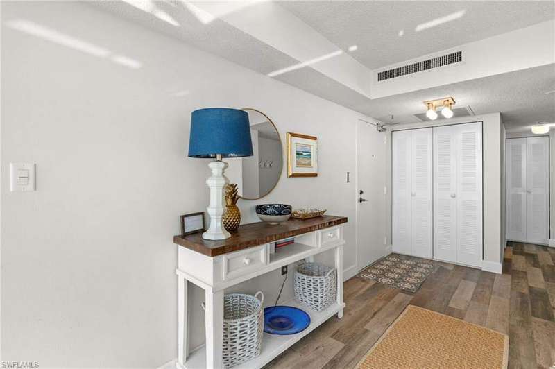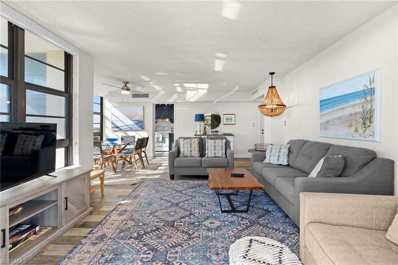 This beautifully decorated turnkey unit offers breathtaking wraparound views of the Gulf of Mexico, pool, and surrounding vistas from an oversized lanai-perfect for relaxing or entertaining. The interior features stunning vinyl flooring throughout, elevating the decor, and a custom-designed kitchen with modern cabinetry that adds both style and functionality. Located in the desirable South Seas Towers, this exceptional property combines luxury living with resort-style amenities, including a year-round heated pool, fitness center, tennis and pickleball courts, boat docks, and kayak/canoe storage. Additional conveniences include 24-hour gated security and covered garage parking. Recent renovations to the lobby, elevators, and social areas enhance the appeal of this coastal retreat. Your dream home awaits!