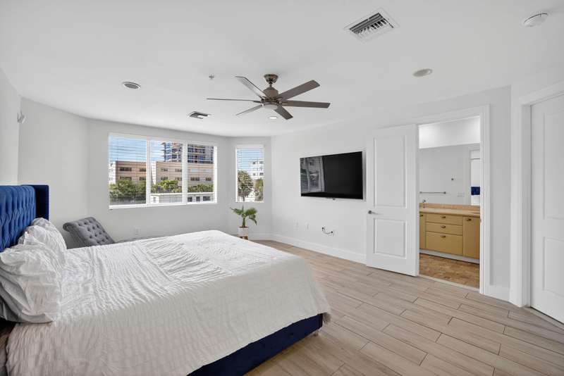 This gorgeous 4-level townhouse is perfectly situated in the highly desirable Ft. Lauderdale Beach community, just one block from the beautiful blue ocean & within walking distance to the finest restaurants. Minutes from Las Olas Blvd this spacious residence offers over 3,000 sq. ft. of luxurious living space with a private elevator, two-car garage, and secure gated entry. The 1st floor features a two-car garage & laundry area, the 2nd floor offers a bright living room, formal dining, breakfast area, and gourmet kitchen complete with new kitchen Aid appliances and digital refrigerator, the 3rd floor hosts the master ensuite along with two guest bedrooms and full bath, while the 4th floor includes an additional guest suite & rooftop terrace. Community pool and rent 12 times a year!