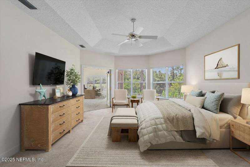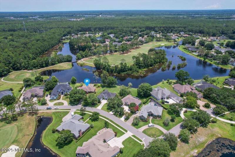 Wow! Beautiful brick home in Deercreek Country Club. Sensational view of lake and golf course upon entering the Living Room with its high vaulted ceiling, wood floors & fireplace. Dining Room offers a touch of elegance with its chandelier and architectural details. Kitchen has 42'' white cabinets, a center island w/ prep sink, & eat-in Breakfast Nook with bay window. Primary Bedroom has 3 large walk-in closets, a spacious Bath, and a huge Flex space overlooking the lake and golf course. Oversized 3 car garage (seller converted single car to a workroom yet convert easily converted back). Two Bedrooms share Jack & Jill Bath with new shower. The 4th Bedroom is the perfect place for an Office and/or a Guest Room with its built-in Murphy Bed. New A/C, garage door motor, gutter guards, shower in hall bath. $5,000 credit towards membership initiation fee in Deercreek County Club included. Convenient location to downtown, Mayo Clinic,, the Beaches and so much more.
