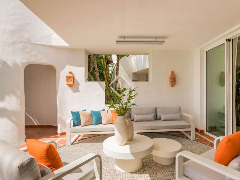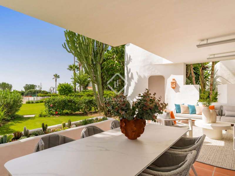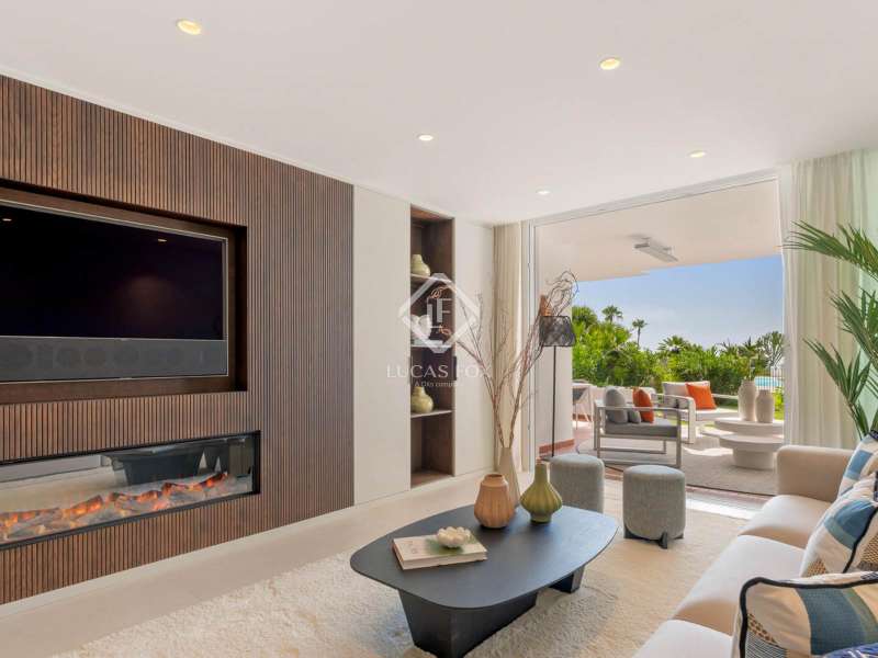 Located in the prestigious Costalita community on Estepona’s New Golden Mile, with a generous 140 m² of living space, this apartment blends modern luxury with coastal charm, creating an ideal retreat for those seeking both tranquility and convenience. The property features three spacious bedrooms, each equipped with custom-built wardrobes, and two elegantly designed bathrooms, including a luxurious en-suite in the main bedroom. The open-plan living area is flooded with natural light and seamlessly connects to a large 35 m² private terrace that offers breathtaking views of the Mediterranean Sea and the lush, tropical gardens. A second smaller terrace provides an additional space to enjoy the outdoors. The designer kitchen, equipped with high-end Miele appliances, is perfect for both cooking and entertaining. The apartment’s spacious layout offers comfort and style throughout, while its prime location allows for easy access to Estepona’s best attractions. Please contact us for further information.