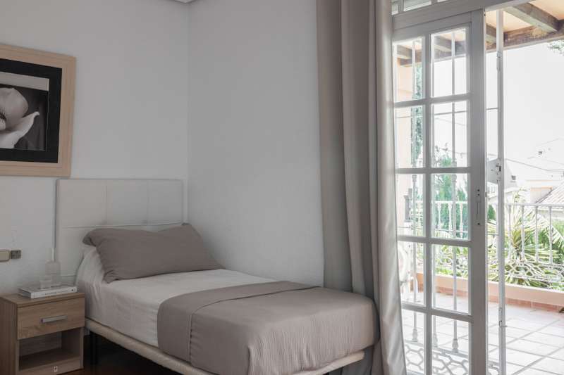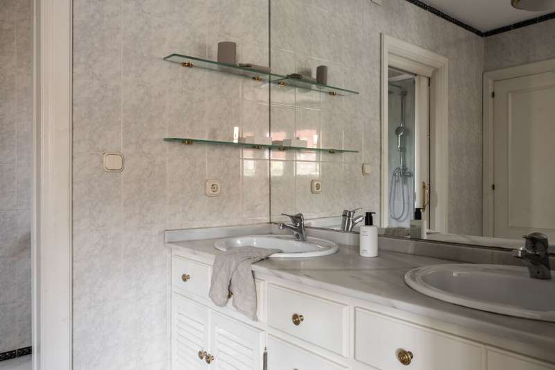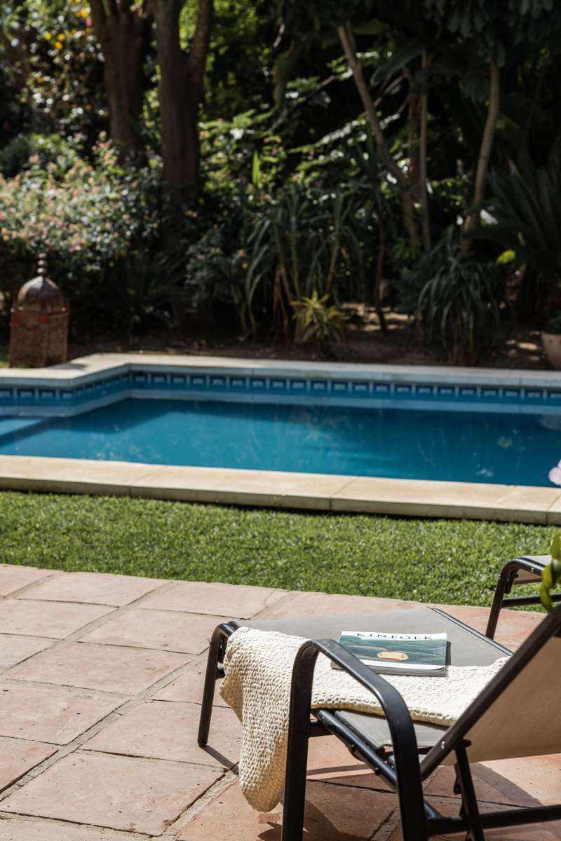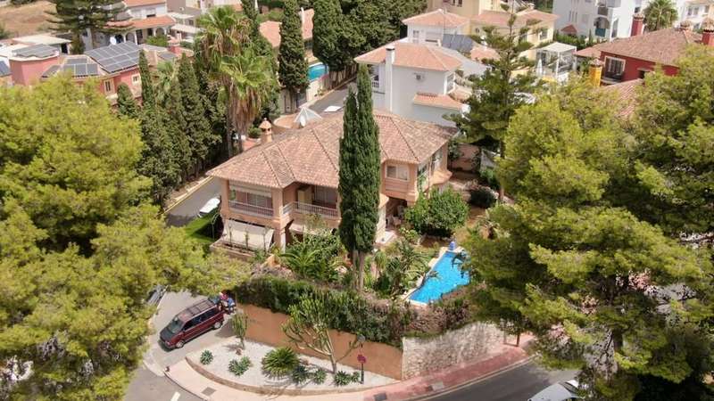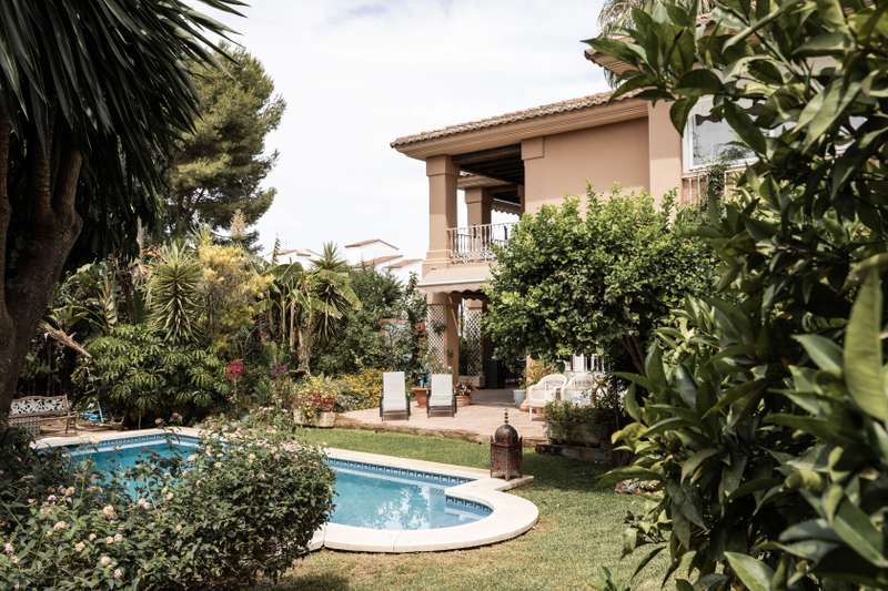 Luxury villa with an amazing tropical garden and a private pool, is a must see. This villa is completely modernized and for sale in El Coto, Fuengirola As you enter the house, you are presented with a large reception area with the house that gives way to a wonderful hall with the stairs on the right. On the first floor you can find a large independent kitchen with a laundry room attached. There's a guest toilet, a dining room and a spectacular L-shaped living room with a fireplace and large windows overlooking the garden and pool. The second floor has 4 spacious bedrooms with terraces that have beautiful views. The master bedroom has its own suite bathroom with a dressing room, it also includes one shared bathroom. In the garden you find a barbecue area, a terrace and a lawned area with fruit trees and a private pool. This property has a double garage plus a separate guest apartment, and in the basement you can find a large wine cellar. The property is ideal for rentals and fam
