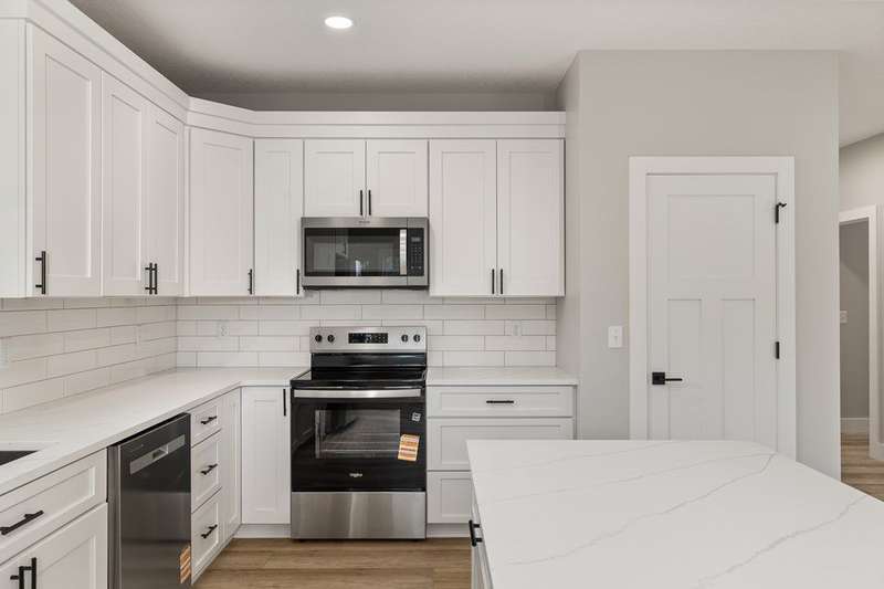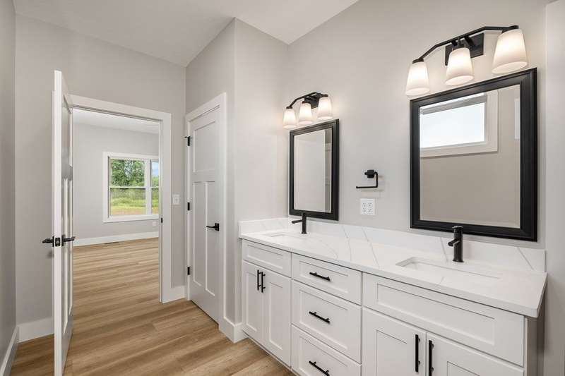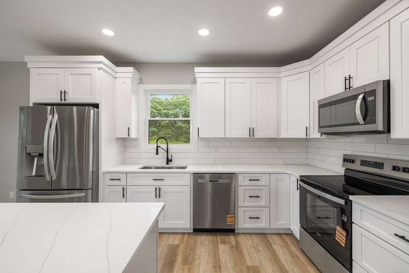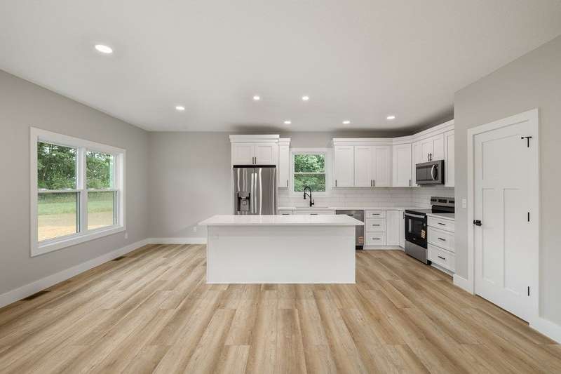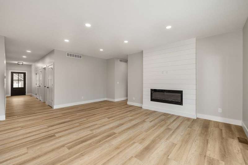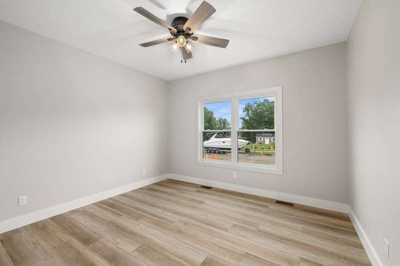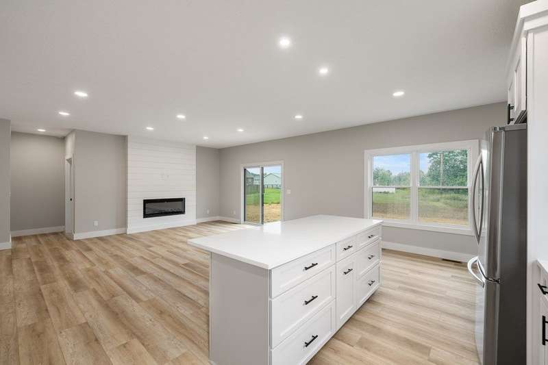 BRAND NEW luxury home in Ontario's desirable Red Maple Farms subdivision! Nestled on a spacious 0.73-acre lot at the end of a quiet cul-de-sac, this stunning home features an open-concept floor plan filled with natural light. Designed with both comfort & style in mind, the interior is finished with neutral tones & high-end luxury vinyl plank flooring throughout. The spacious living area includes an electric fireplace, perfect for cozy gatherings. The gourmet kitchen is a standout, featuring quartz countertops, custom cabinetry, stainless steel appliances, a tiled backsplash, a large island, & a walk-in pantry sure to please any home chef. The private primary suite offers a serene retreat with a large ensuite bath, double vanities, & a generous walk-in closet. Additional features include a first-floor laundry room, attached 2-car garage, concrete patio, & a 13-course block basement already rough-plumbed for a full bathroom'?offering potential for a future rec room or living space.
