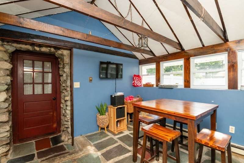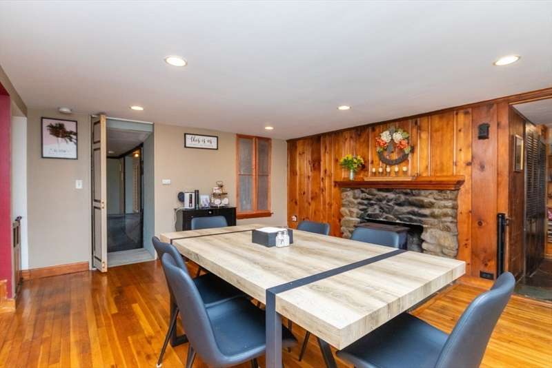 Welcome to 8 Old Fisher Lane! This inviting 8 room, 4-bedroom, 3-bath home features over 2,000 sq. ft. of living space with classic stone siding and timeless character. The first floor offers a spacious primary suite with ensuite bath, a modern kitchen with newer stainless steel appliances, a bright dining room with wood stove, cozy living room with wood-burning stove, and a family room with cathedral ceiling and loft. Enjoy a convenient laundry, second full bath, and a sun-filled heated four-season room overlooking a private backyard oasis with an inground pool—perfect for entertaining or relaxing. Upstairs, you’ll find three generously sized bedrooms and a third full bath. Additional highlights include a peaceful lot, fenced yard, oversized two-car garage currently used as workshop and storage, and numerous updates throughout. Ideally located near town center, Fisher School District, major routes, Adam’s Farm, and scenic trails.