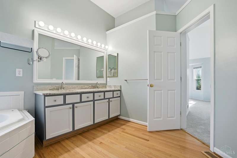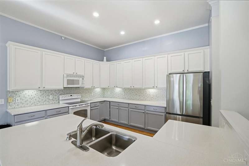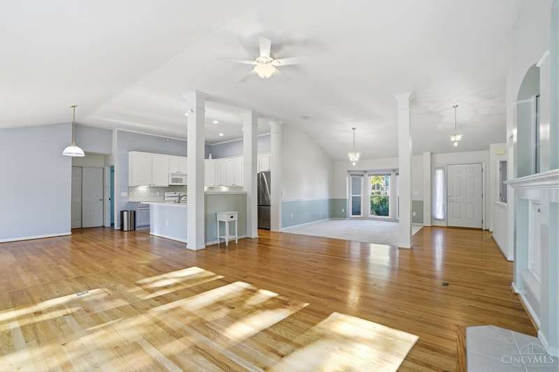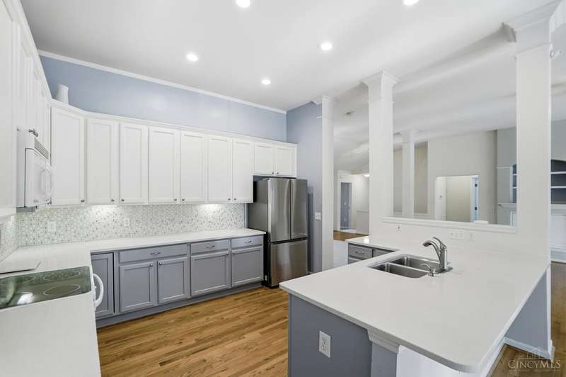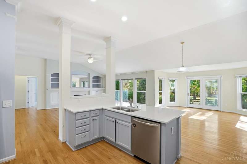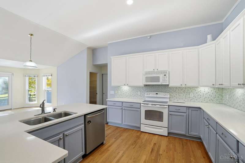 All brick, low maintenance 3 bedroom, 3 bath Drees ranch in Creekside Community! Open & functional floor design , approx 2400 sf above grade, great room with built ins, beautiful kitchen with painted cabinets & quartz countertops offers plenty of storage & counter space, 7' x 5' walk in pantry, Breakfast room is filled with lots of natural sunlight, first floor laundry, spacious primary with sitting room, 5'x 8' walk in closet, Hardwood floors, newer LVP flooring, New carpet, finished lower level (approx 1200sf): study, family room & full bath, plenty of unfinished space for storage needs or for future finish. Rear patio, fenced yard. Excellent location, NO HOA